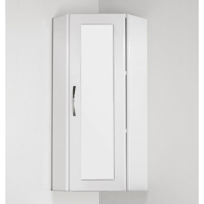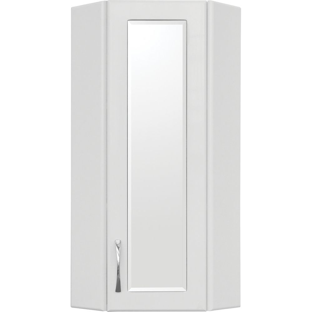 Тумба: угловая, напольная, габариты 31,2x31,2x85 см, материал корпуса — ЛДСП с ламинатом, светлая фурнитура из хрома. Внутренние полки несъемные, что обеспечивает надежность конструкции. Гарантия 1 год.