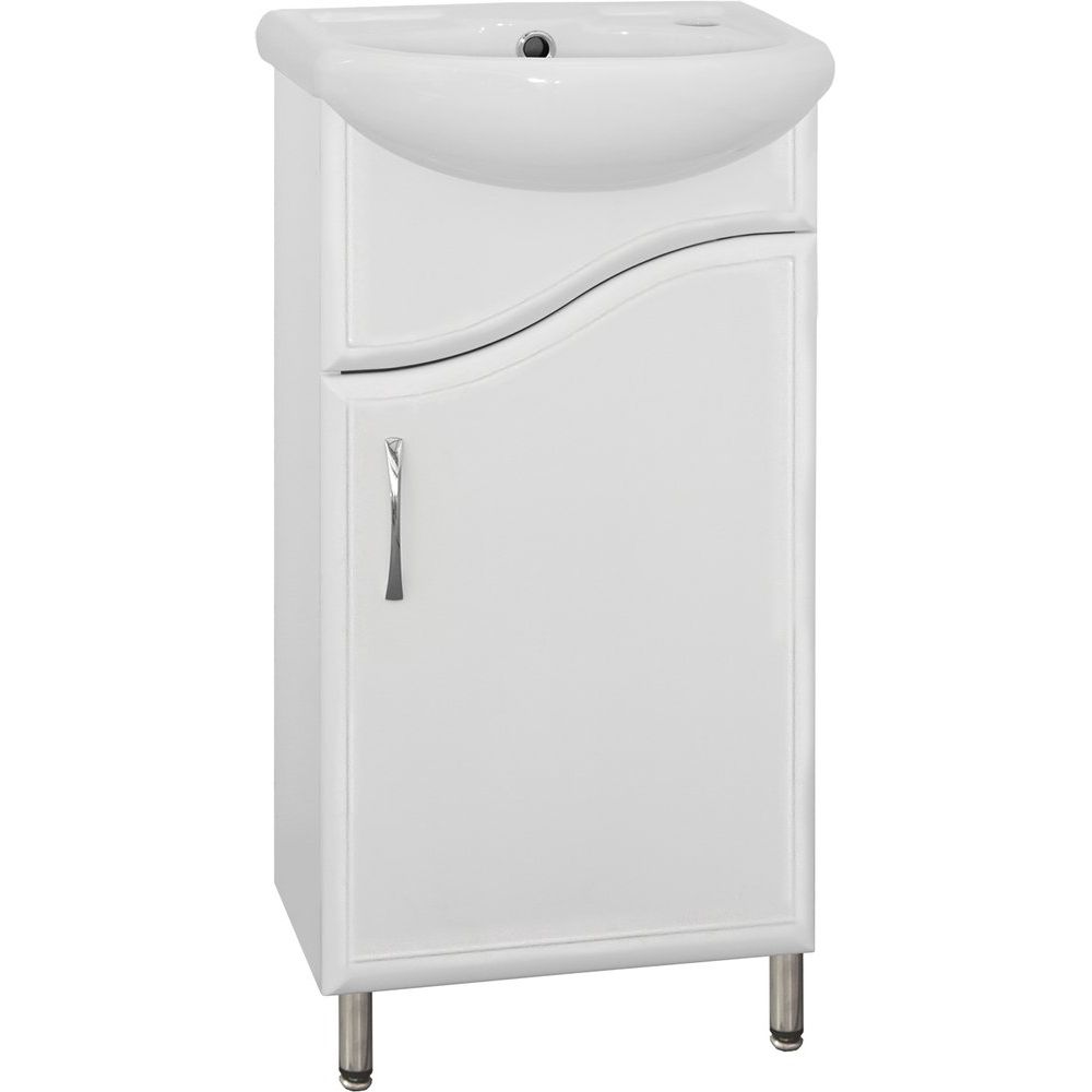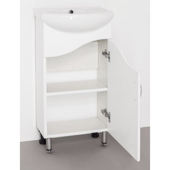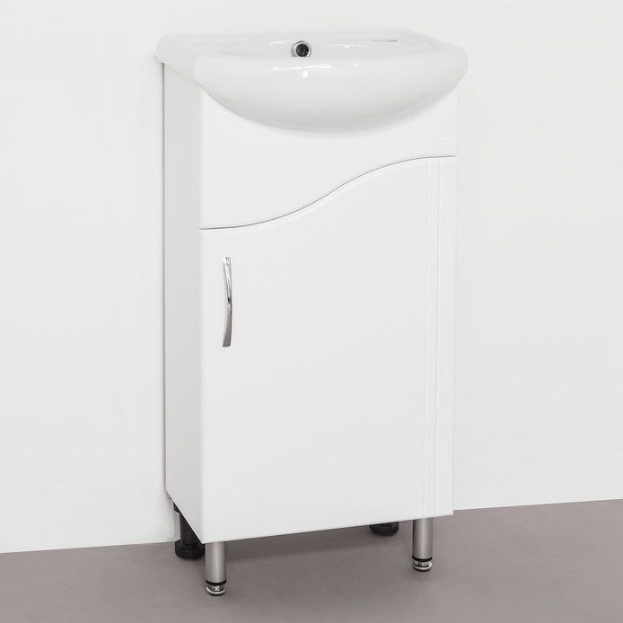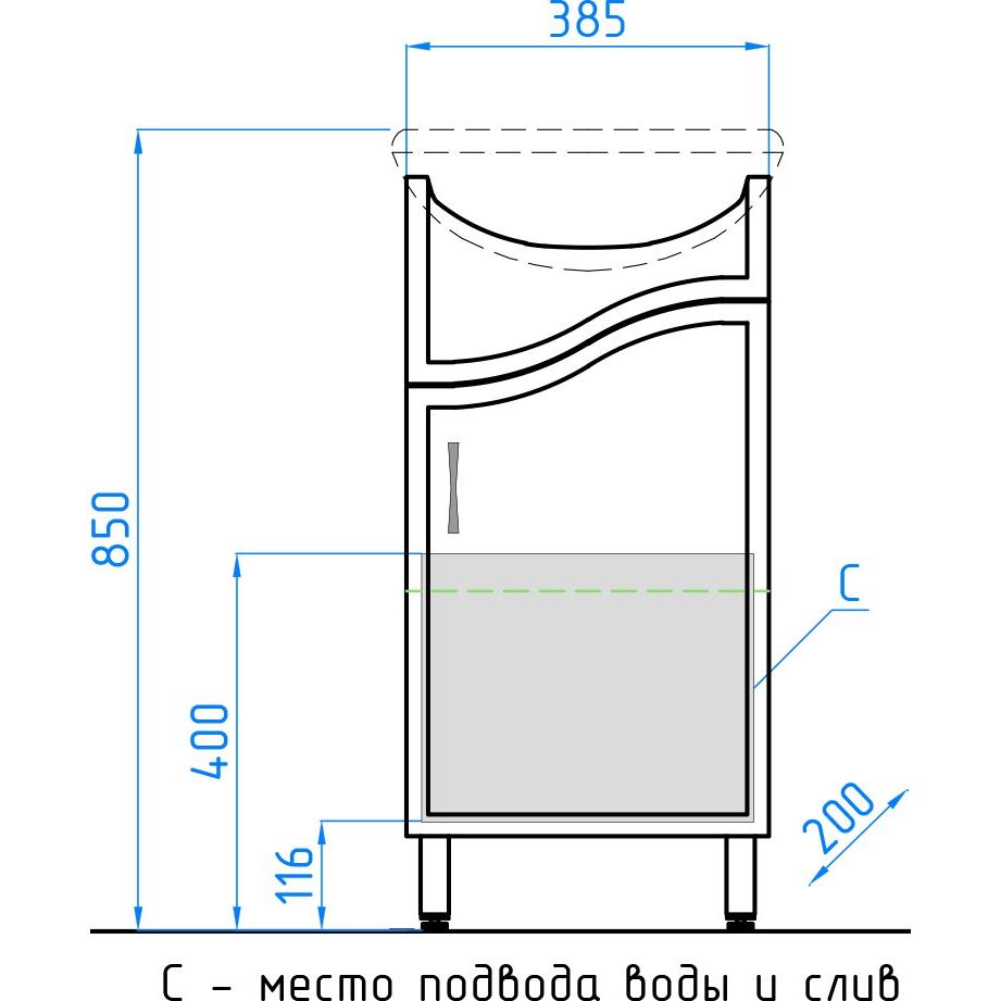 Тумба для комплекта: Изготовлена из ЛДСП с ламинатным покрытием, фасад выполнен из МДФ и покрыт плёнкой. Размеры: 38,5x20x85 см. Напольная конструкция с доводчиком для плавного закрывания. Хромированная фурнитура и несъемные внутренние полки обеспечивают долговечность и удобство использования. Гарантия — 1 год. Производство Россия.