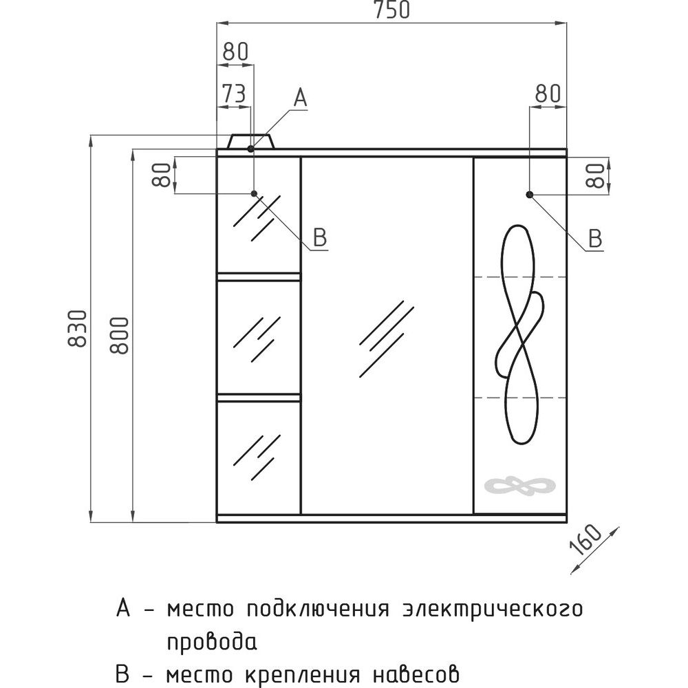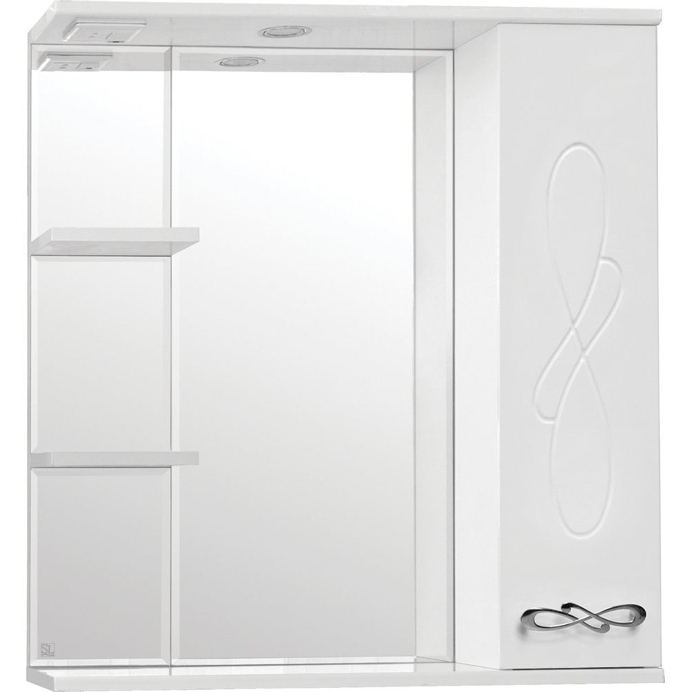 Зеркало с подсветкой оснащено механическим выключателем и изготовлено из пластика. Габариты зеркала — 75x4x80 см, оно подвесное. Гарантия на зеркало также 1 год.