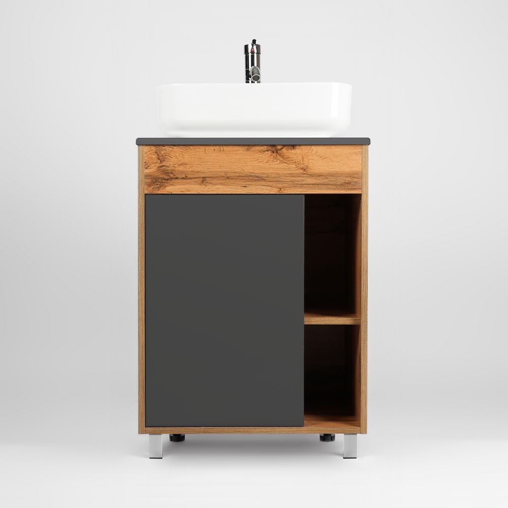 - Функциональность: Идеально подходит для раковин-чаш и предлагает дополнительные места для хранения.