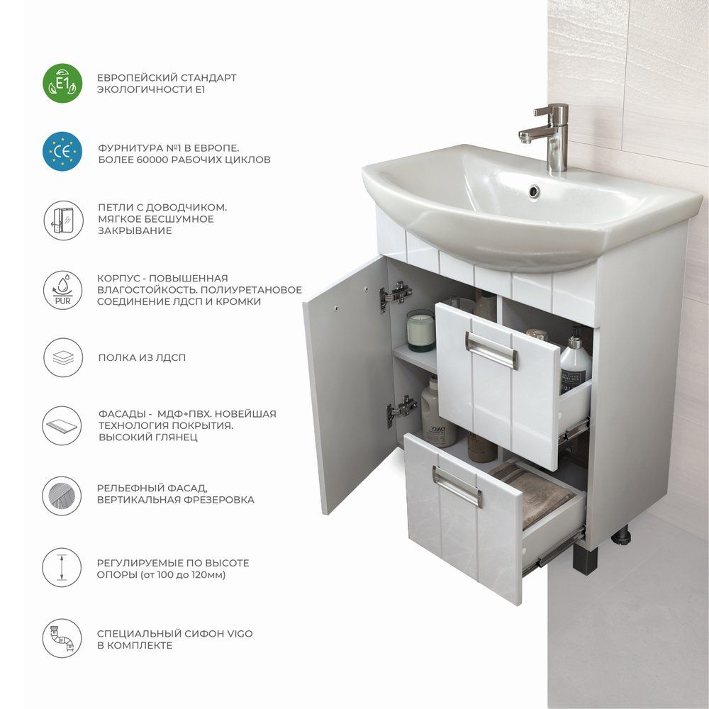Обратите внимание, что выбор сифона должен учитывать особенности конструкции тумбы и раковины. В комплекте идет сифон, с которым использование донного клапана невозможно — его следует приобретать отдельно. Зеркала могут варьироваться в зависимости от наличия на складе, пожалуйста, ориентируйтесь на описание и фотографии в карточке товара. Также помните, что для полноценной организации пространства можно приобрести дополнительный шкаф-пенал.