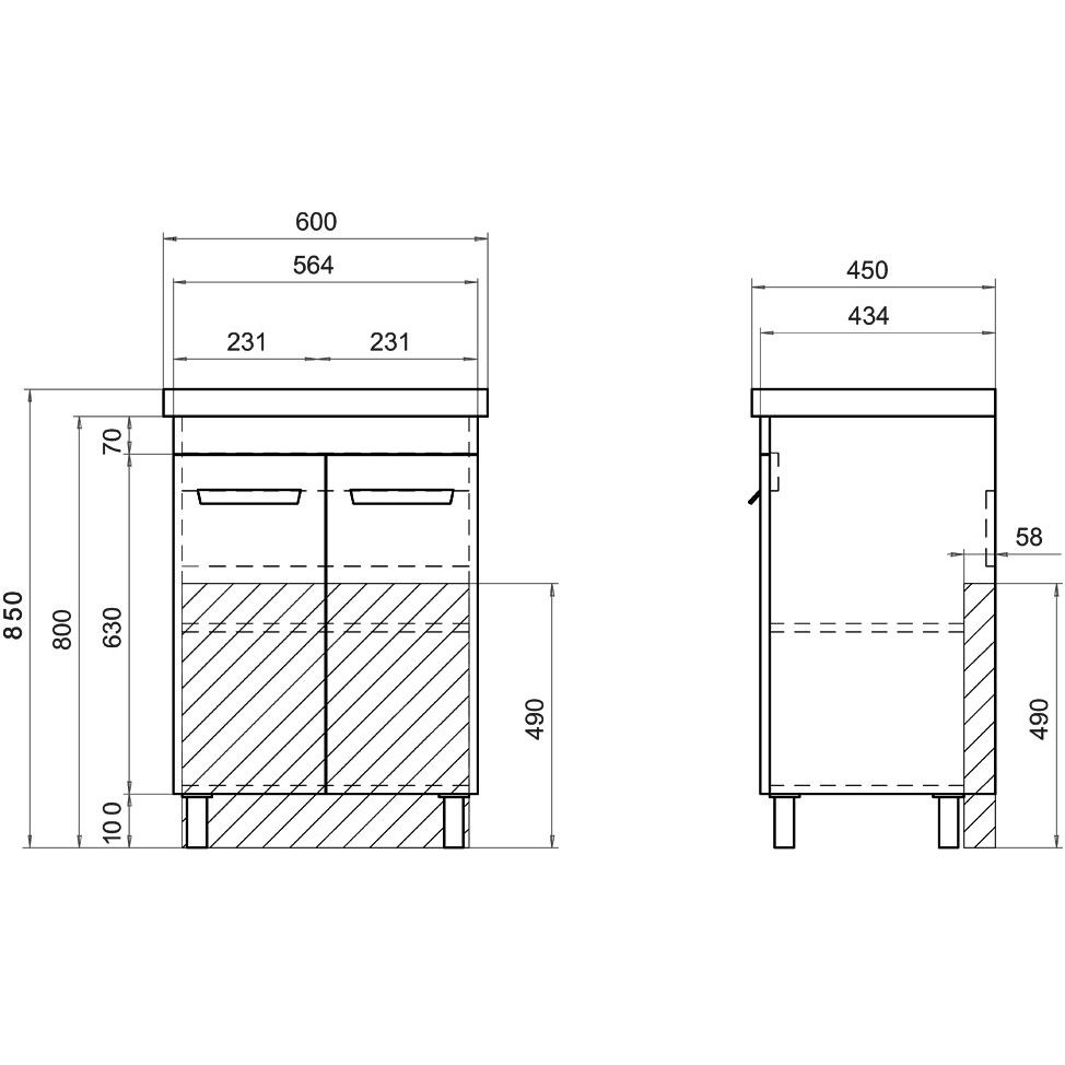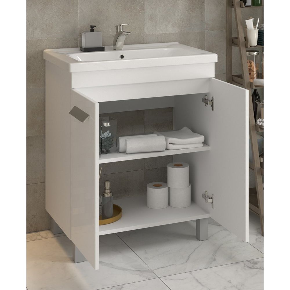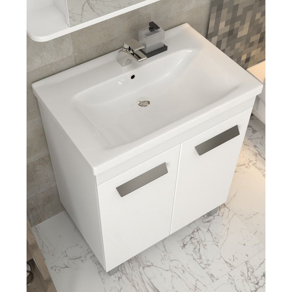 - Высокая долговечность материалов: корпус и фасады из ЛДСП и МДФ, раковина из фарфора.