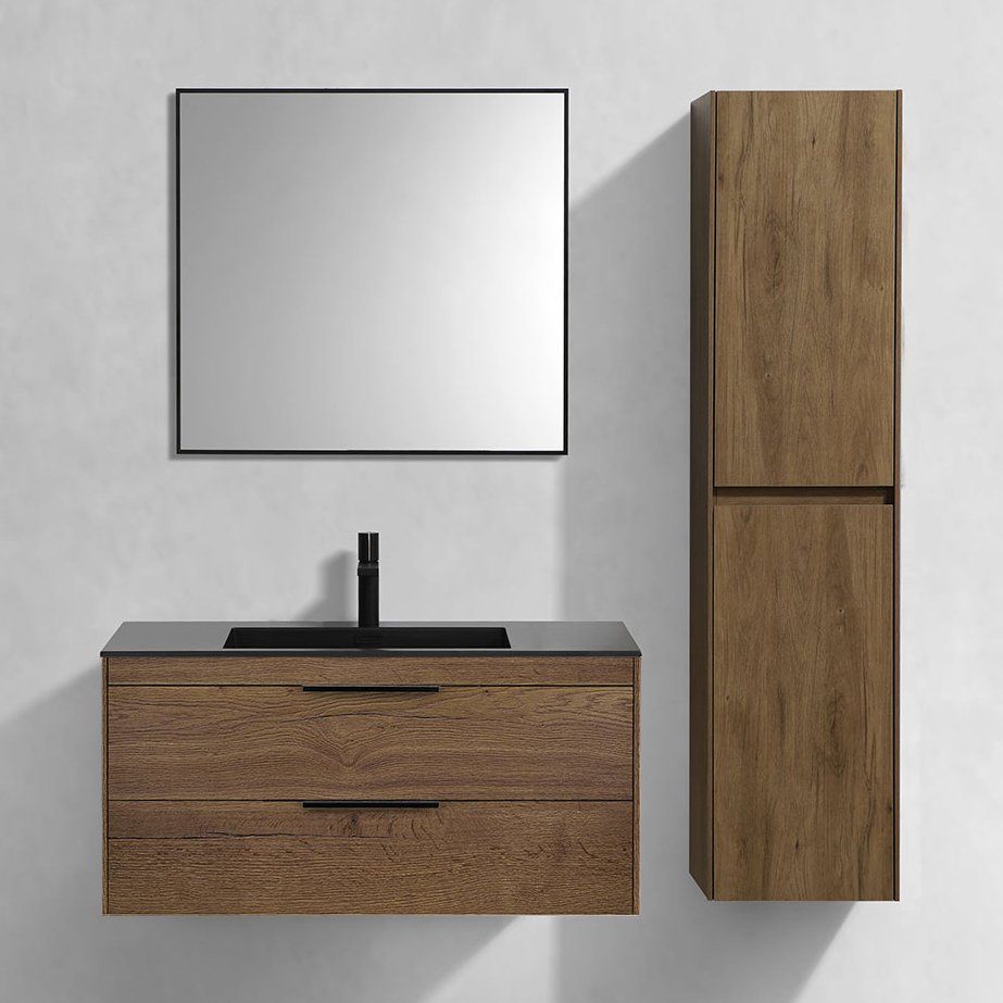 Компания Santehnika-Go предлагает стильный и элегантный мебельный гарнитур для ванной комнаты Vincea Chiara 2D 100 с двумя ящиками. Гарнитур выполнен в современном дизайне и сочетает в себе текстуру "дуб табак" с изысканной черной раковиной, что придаёт ему особый характер и эстетичность. Идеальный выбор для тех, кто ценит комфорт и уникальные решения в интерьере.