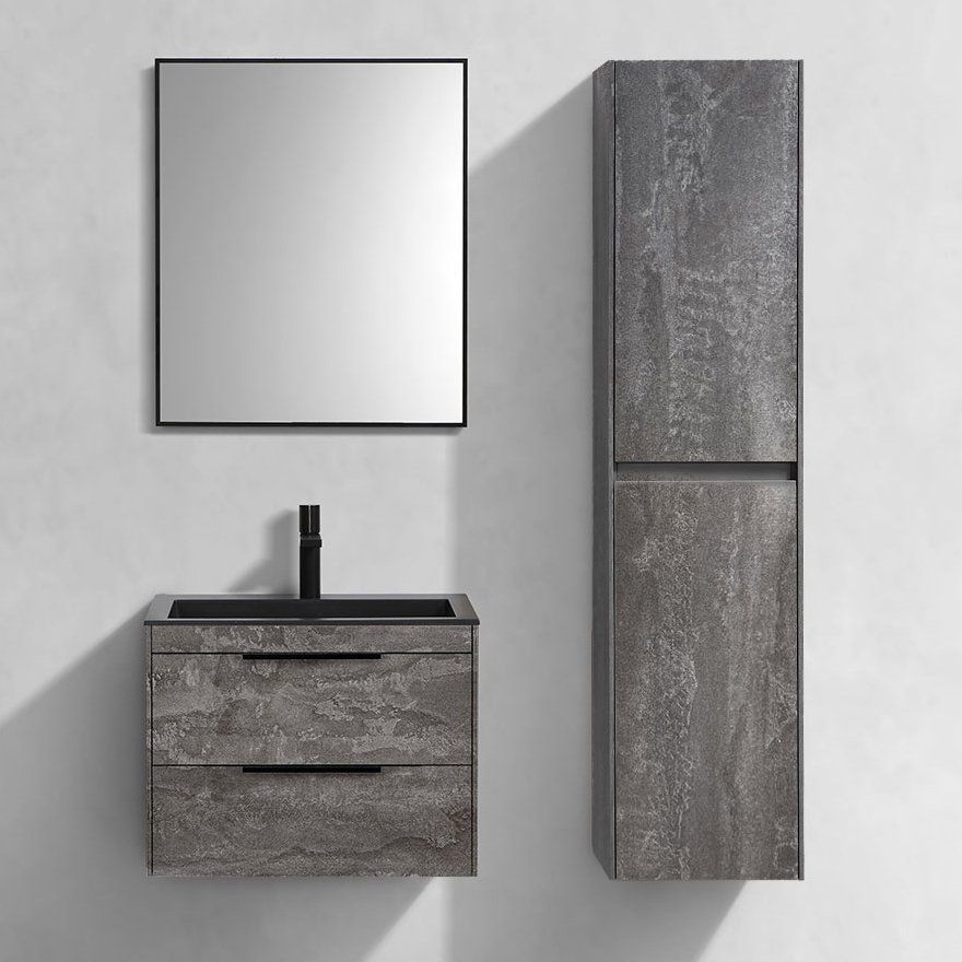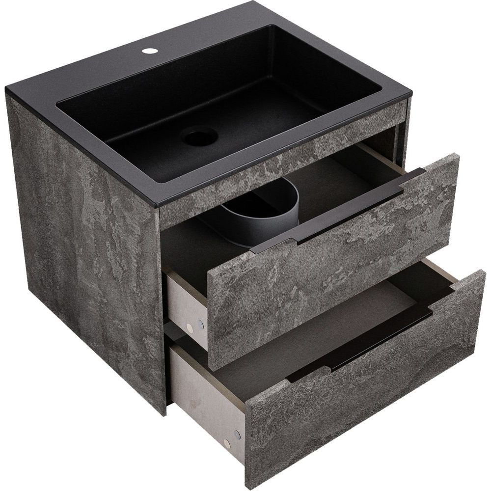 Комплект состоит из подвесной тумбы Vincea Chiara 2D с двумя ящиками, выполненной из ламинированного ЛДСП. Ящики оснащены доводчиком для мягкого закрывания. Габариты тумбы составляют 59,2x47,6x47,5 см, что позволяет рационально использовать пространство. Черная мебельная раковина изготовлена из искусственного камня и имеет размеры 60x48 см. Она оснащена одним отверстием для смесителя и требует отдельного приобретения донного клапана. Элегантное зеркало Vincea VLM-3VN600 (60х80 см) с сенсорной кнопкой для включения подсветки дополнит гарнитур, придавая ванной комнате особую атмосферу.