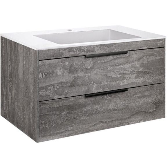Тумба Vincea Chiara 2D 80 выполнена в темном дубовом цвете с черной фурнитурой, её размеры составляют 79,2x47,6x47,5 см. Контрастное сочетание цветов делает её современным украшением любой ванной комнаты. Подвесная конструкция облегчает уборку пола, а механизм soft-close предотвращает резкие удары. Мебельная раковина, разработанная из искусственного камня, имеет размеры 80x48 см и предусмотрена для сифона диаметром 3,2 см. Она оснащена одним отверстием для смесителя. Зеркало (80x3x60 см) дополнено сенсорной кнопкой для регулировки подсветки и функцией антизапотевания, что делает его использование ещё более приятным.