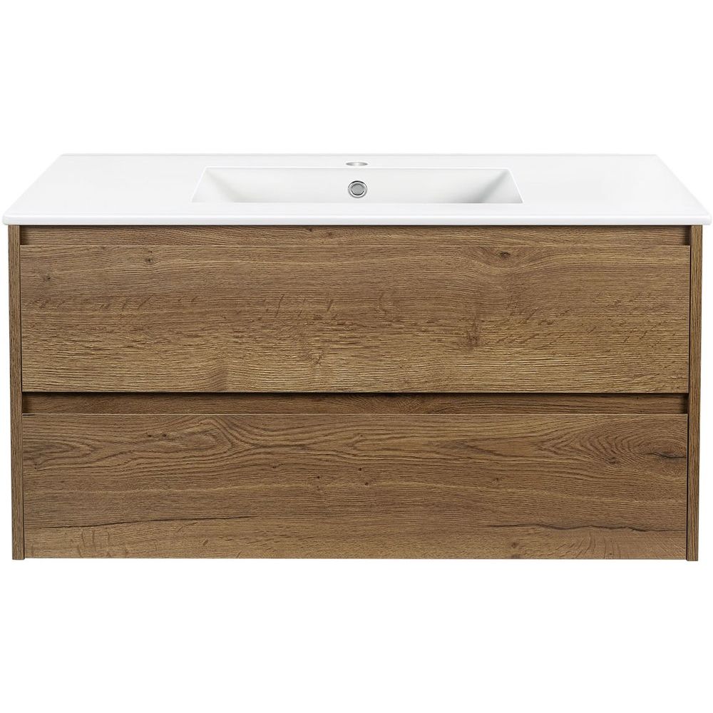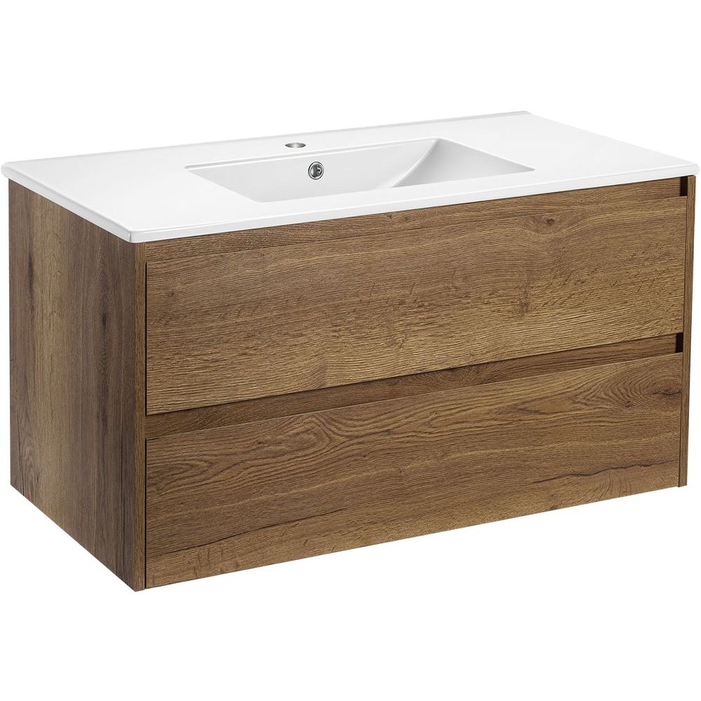 Знакомьтесь, мебель для ванной Vincea Gio 100 в изысканном цвете дуб табак — идеальное сочетание стиля и функциональности. Этот комплект превращает вашу ванную комнату в современное искусство, объединяя в себе итальянскую эстетику и практичность. В комплект входят подвесная тумба, мебельная раковина, а также зеркало с регулируемой подсветкой.
