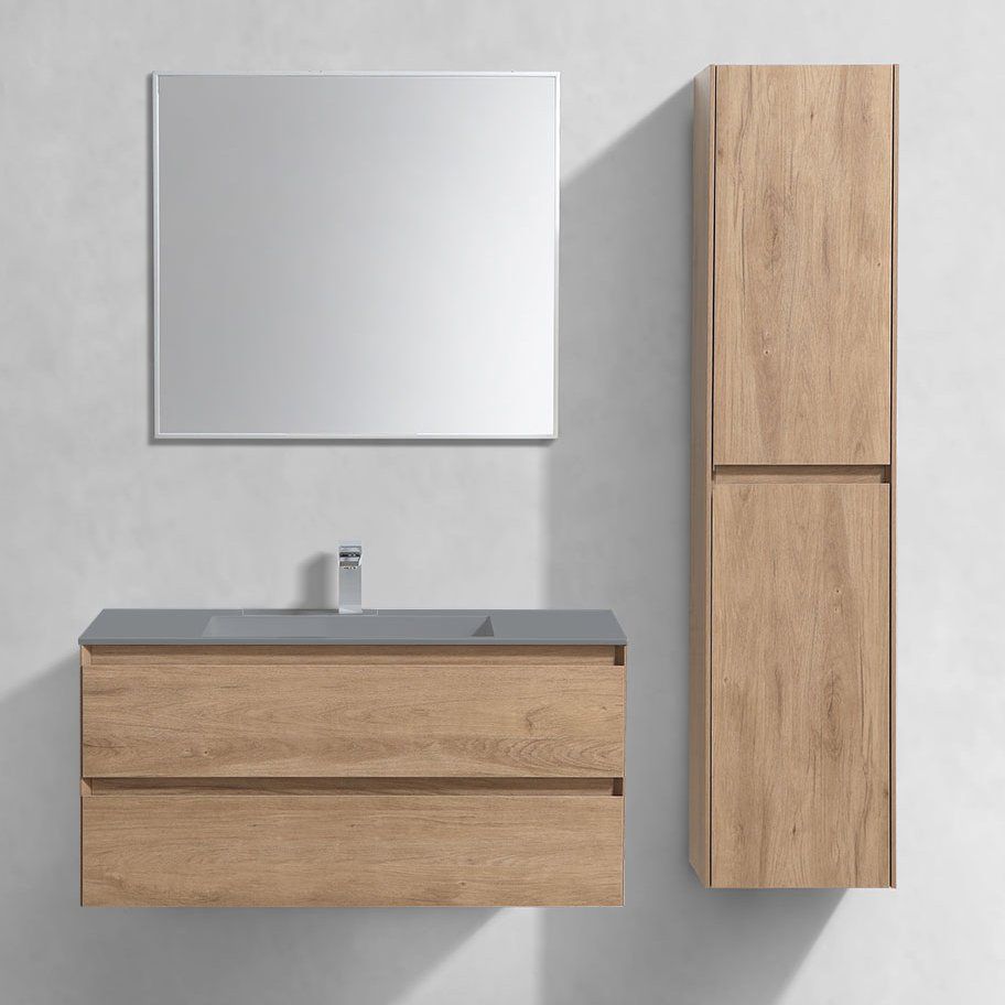 Гарнитур состоит из подвесной тумбы Vincea Luka размером 99x47,6x47,5 см из ЛДСП с ламинатным покрытием. Два вместительных ящика оснащены механизмом доводчика. Раковина Vincea VCB-13100G выполнена из искусственного камня размером 100x48 см, имеет отверстие под смеситель и рассчитана на сифон диаметром 3.2 см. Для раковины понадобится донный клапан, который нужно приобрести отдельно. Зеркало Vincea VLM-3VN100 размером 100х80 см с подсветкой управляется сенсорной кнопкой и выполнено из пластика. Это изделие обрамлено в стильный корпус с регулируемой подсветкой для комфортного использования.