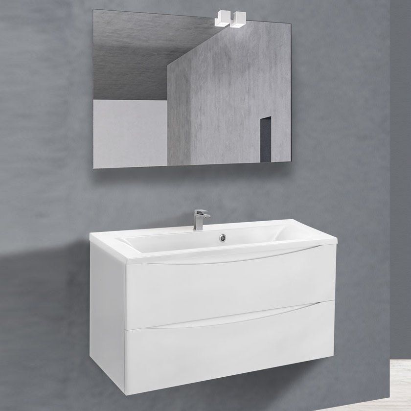 Тумба Vincea Mia 90: Размеры — 89x44,3x50 см, подвесная с белым глянцевым покрытием из плёнки. Корпус выполнен из ЛДСП, а фасад — из МДФ с тем же покрытием. Оборудована ящиками с механизмом доводчика. Гарантия — 3 года. Производство — Италия.