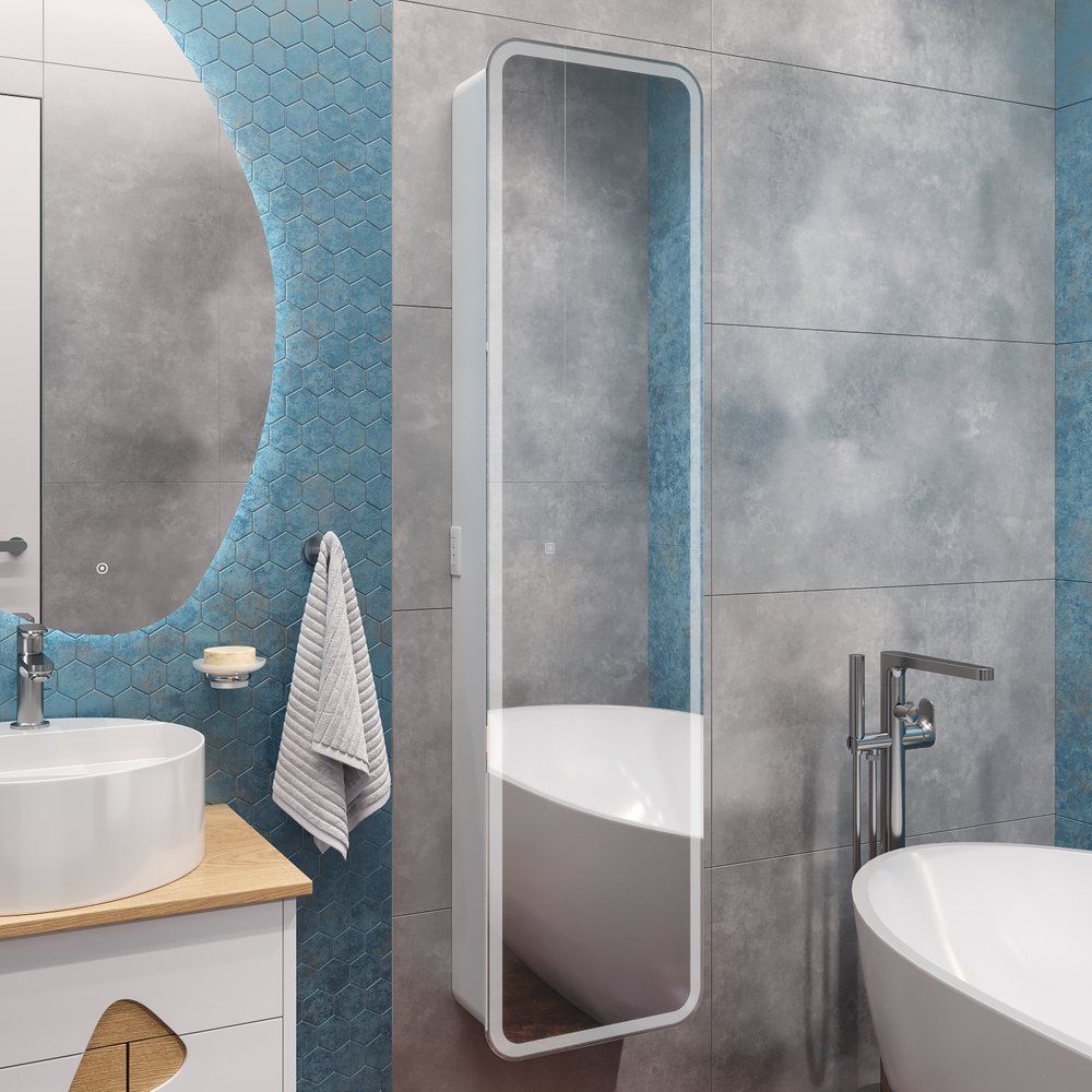 - Удобство использования благодаря механизму плавного закрывания и сенсорного управления подсветкой зеркала.