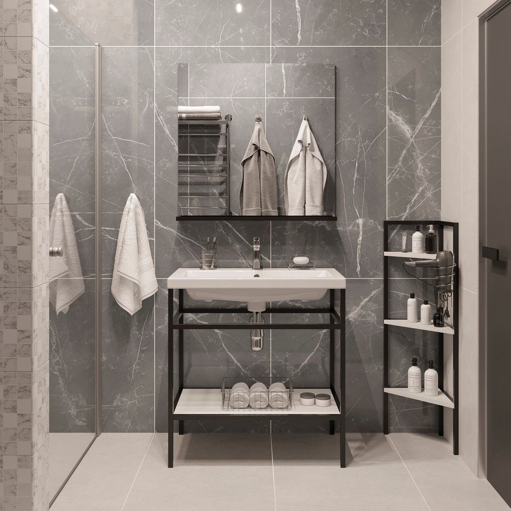 - Практичность: встроенный полотенцедержатель и удобное решение для установки сантехники.