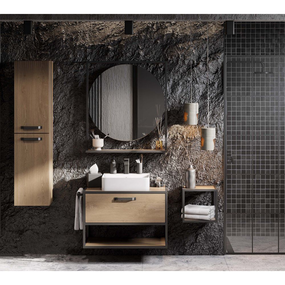 Полка AQUATON Лофт Фабрик в цвете дуб кантри — это стильный и практичный элемент мебели для ванной комнаты, выполненный в минималистичном дизайне. Открытая конструкция в форме куба добавляет изысканности любому интерьеру. Она не только украшает пространство, но и предоставляет дополнительное место для хранения повседневных мелочей. Благодаря удачному сочетанию черного металлического профиля и влагостойкой ламинированной плиты, эта полка устойчива к воздействию влаги и прослужит вам долгие годы.