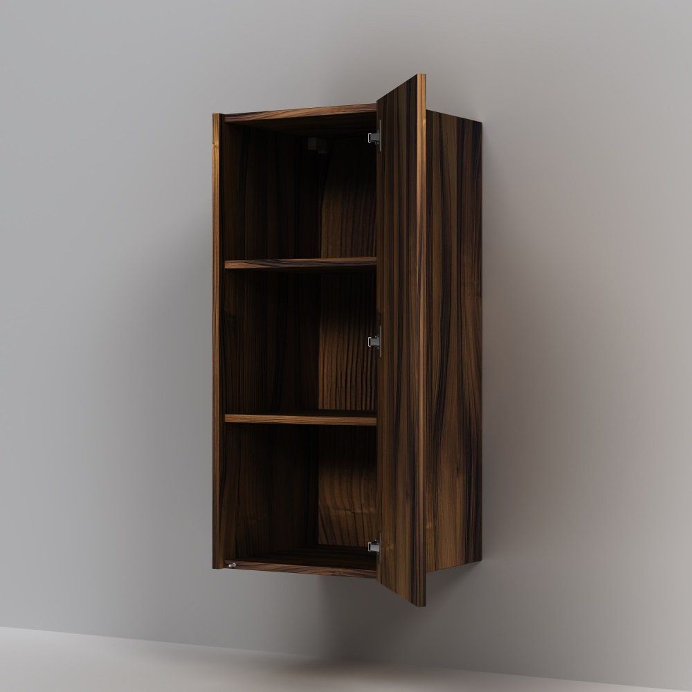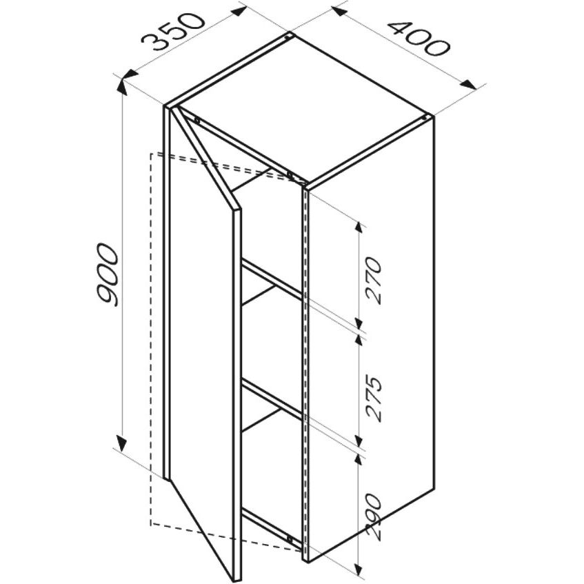 Шкаф AM.PM Func имеет габариты 40x35x90 см, что делает его компактным и вместительным. Петли могут быть расположены как справа, так и слева, что позволяет выбрать наиболее удобный вариант установки. Корпус и фасад изготовлены из прочного ЛДСП и покрыты ламинатом, обеспечивая устойчивость к влаге и долговечность. Внутренние полки несъемные, что придаёт конструкции устойчивость.