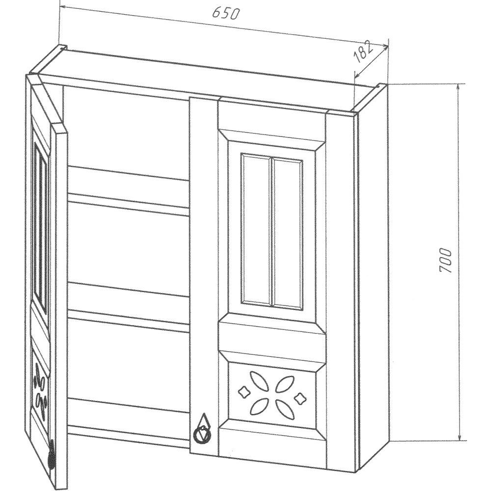 Габариты шкафа составляют 65x18,2x70 см, что делает его идеальным для типовой ванной комнаты. Модель оснащена устойчивыми петлями, которые могут быть расположены как справа, так и слева, в зависимости от ваших предпочтений. Плавность закрывания обеспечена механизмом доводчика. Корпус выполнен из ЛДСП и покрыт ламинатом, фасад — из МДФ с пленкой. Фурнитура выполнена в цвете состаренной бронзы. Изделие производится в России и имеет гарантию 2 года.
