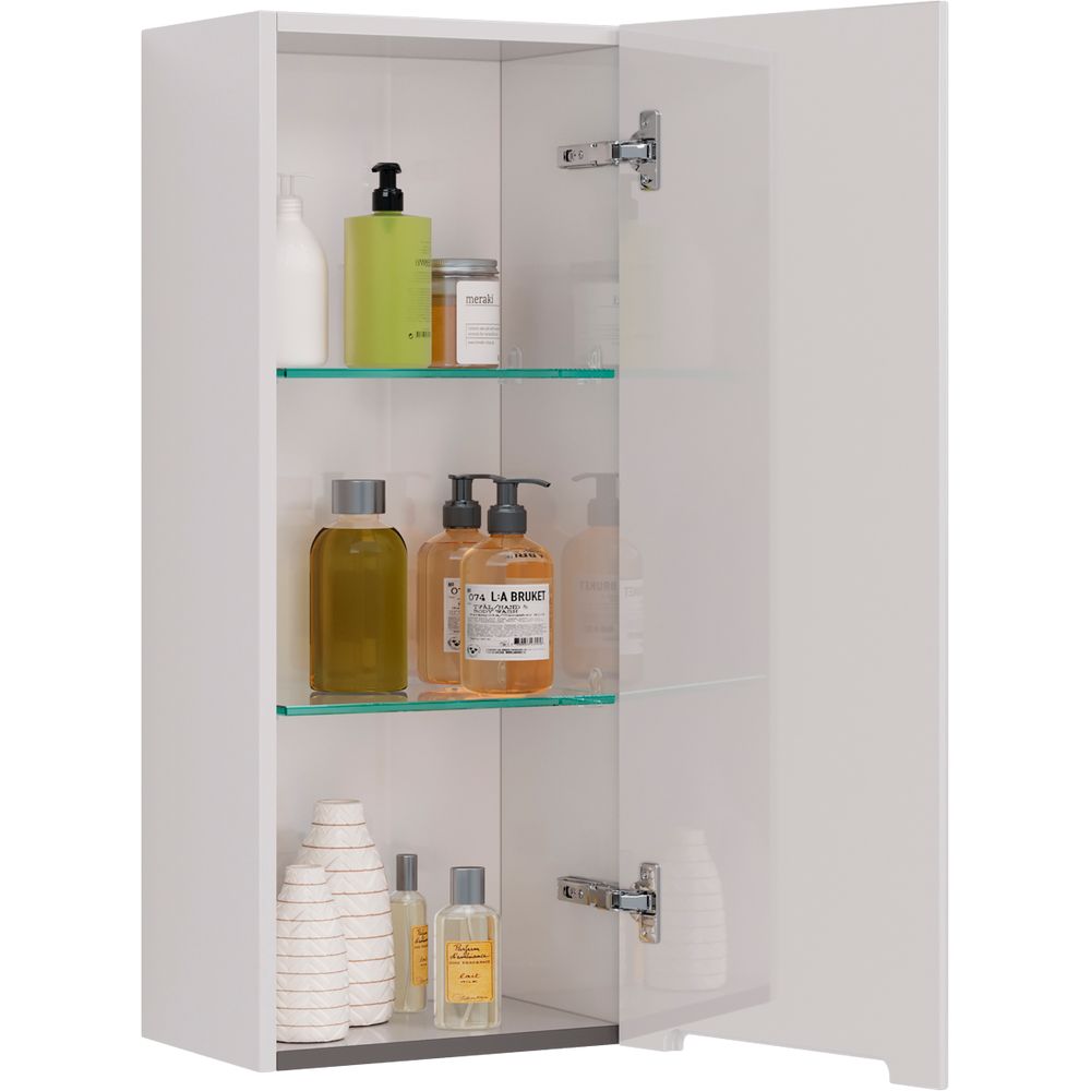 Шкаф Lemark Buno имеет удобные размеры: ширина 35 см, высота 85 см, глубина 24,8 см. Это позволяет рационально использовать пространство ванной комнаты. Петли аккуратно расположены справа, открывая доступ к содержимому шкафа. Корпус из ламинированного ДСП и покрытие из эмали не только защищают мебель от воздействия влаги, но и обеспечивают прекрасный внешний вид. Дверки выполнены из МДФ и тоже покрыты эмалью, что придаёт фасаду дополнительную прочность и устойчивость к повреждениям. Съемные внутренние полки позволяют менять их расположение в зависимости от ваших нужд.