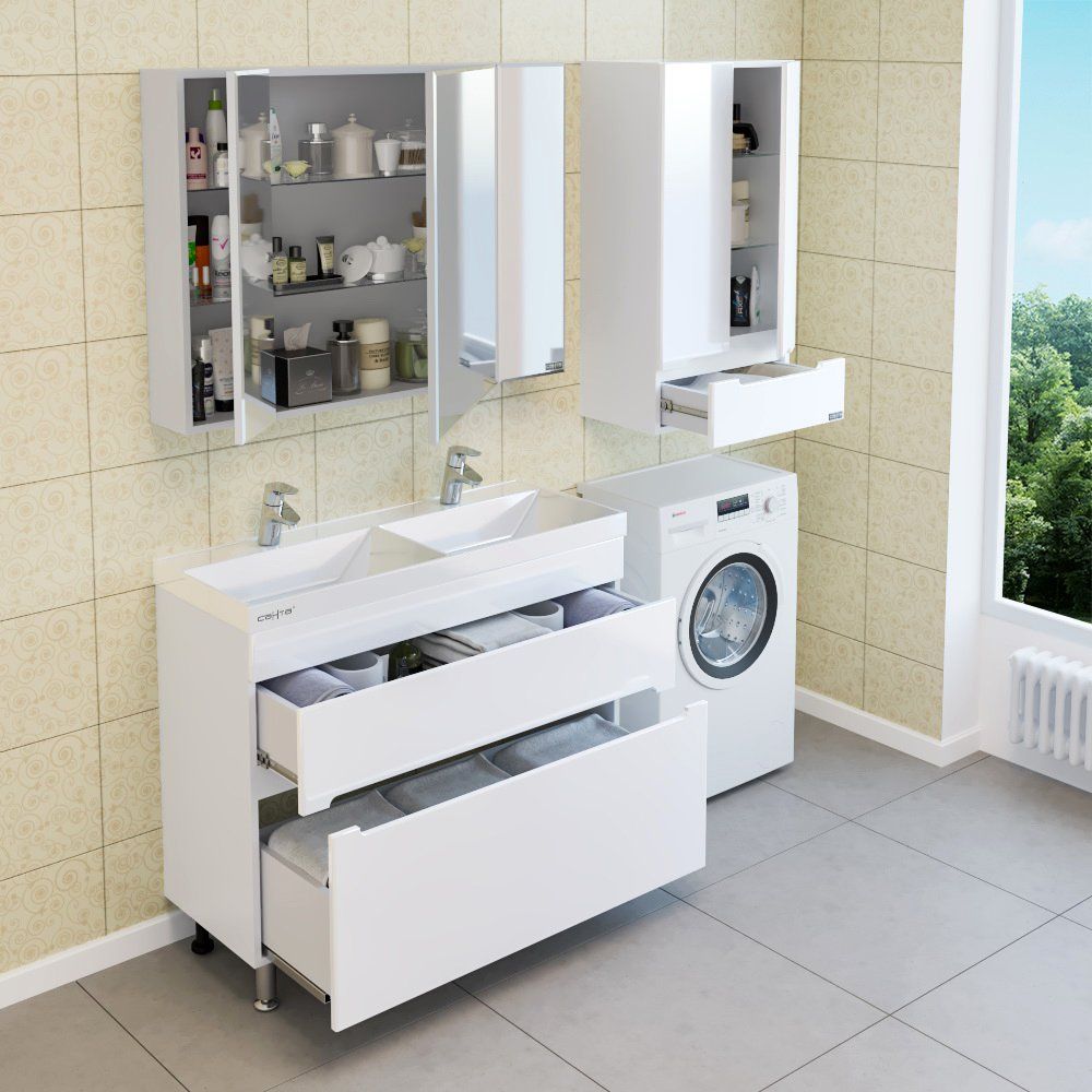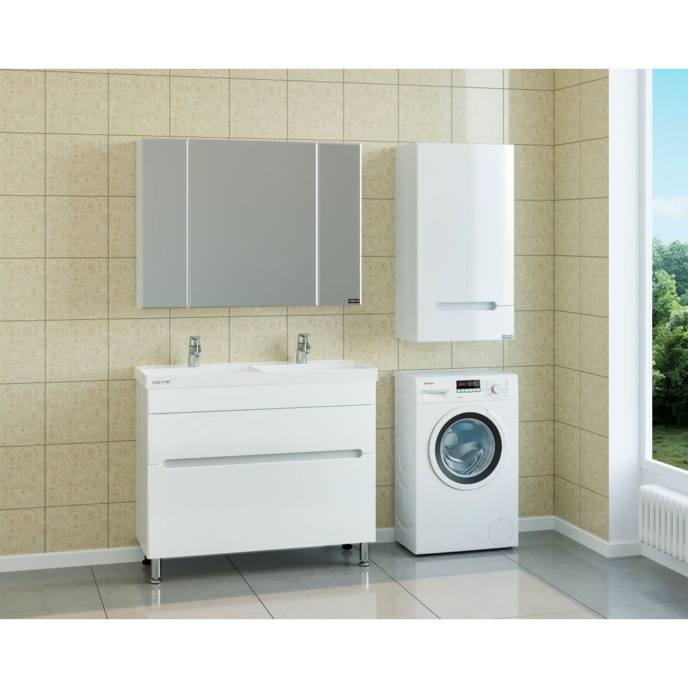 Ищете функциональное решение для организации пространства в ванной? Навесной шкаф «Лондон» от компании «СаНта» станет идеальным выбором для небольших ванных комнат. Вы легко сможете разместить его над стиральной машиной, сохранив драгоценные метры. Выполненный из глянцевой ламинированной МДФ, этот шкаф не боится влаги и перепадов температур, а также устойчив к плесени и грибку. За распашным фасадом скрыты две стеклянные полочки, а плавное и тихое закрывание дверей обеспечивают петли с доводчиками. В комплекте также предусмотрен вместительный ящик, который двигается на направляющих полного выдвижения, предоставляя максимум удобства при хранении мелочей.