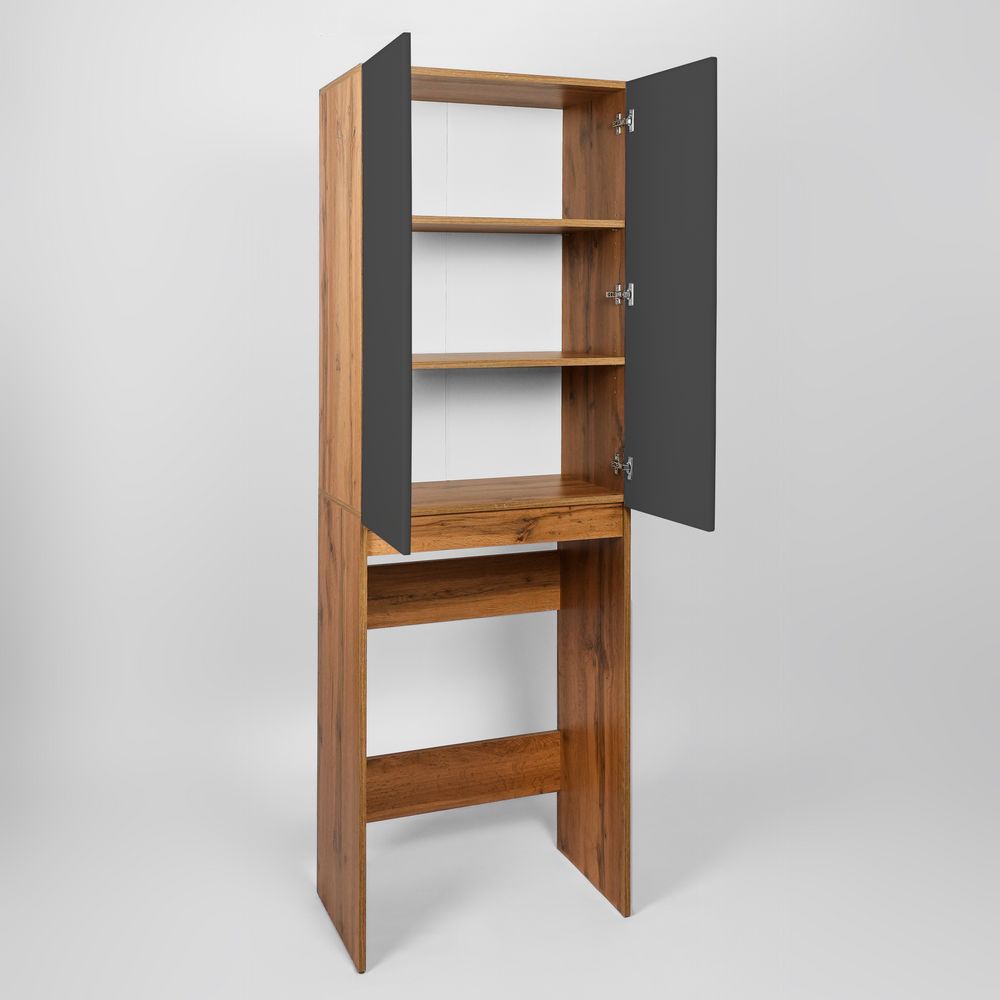 Шкаф VIANT из коллекции Бостон — это идеальное решение для ванных комнат, где каждый сантиметр на счету. Изящный стиль в сочетании с практичностью делает его отличным выбором для современных интерьеров. Модель в цветовой комбинации дуб вотан и графит безупречно вписывается как в светлые, так и в темные помещения. Особенностью данного шкафа является возможность установки стиральной машины, что позволяет оптимизировать пространство ванной комнаты.