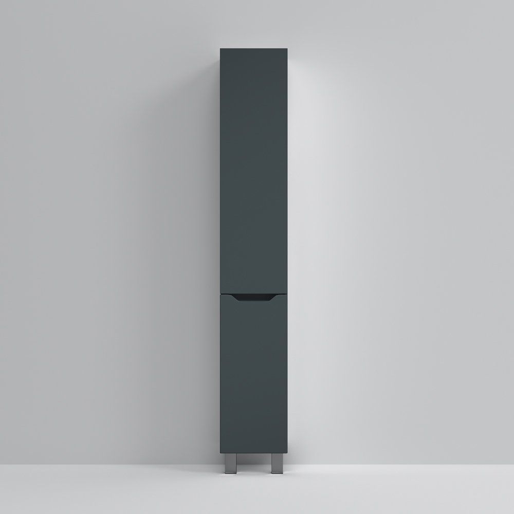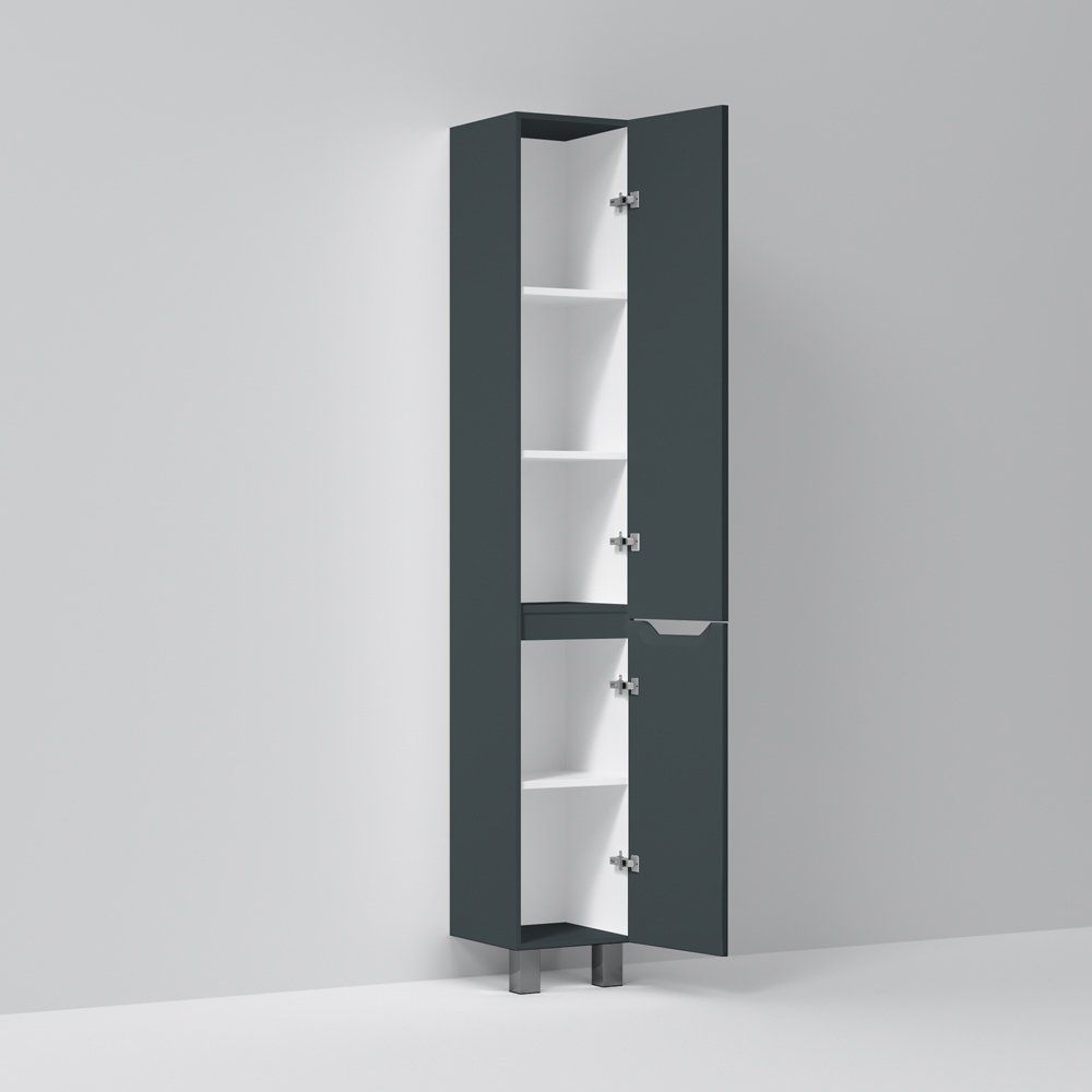 Шкаф-пенал AM.PM Tender R, напольный, в графитом матовом цвете — это идеальное решение для тех, кто ценит в интерьере минимализм и комфорт. Современный европейский дизайн от команды DanelonMeroni (Великобритания/Италия) соединяет в себе эстетику и функциональность. Шкаф оснащен передовыми петлями с системой мягкого закрывания Soft Close, а удобные, интегрированные в фасад ручки делают его использование еще более приятным. Фасады шкафа окрашены экологически чистыми итальянскими красками, а боковины выполнены из влагостойкого ЛДСП, что обеспечивает долговечность и устойчивость к влаге.