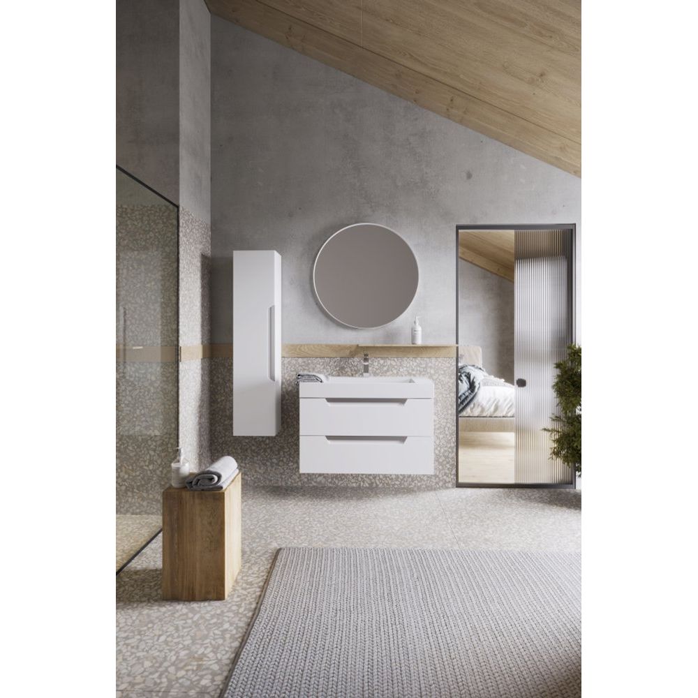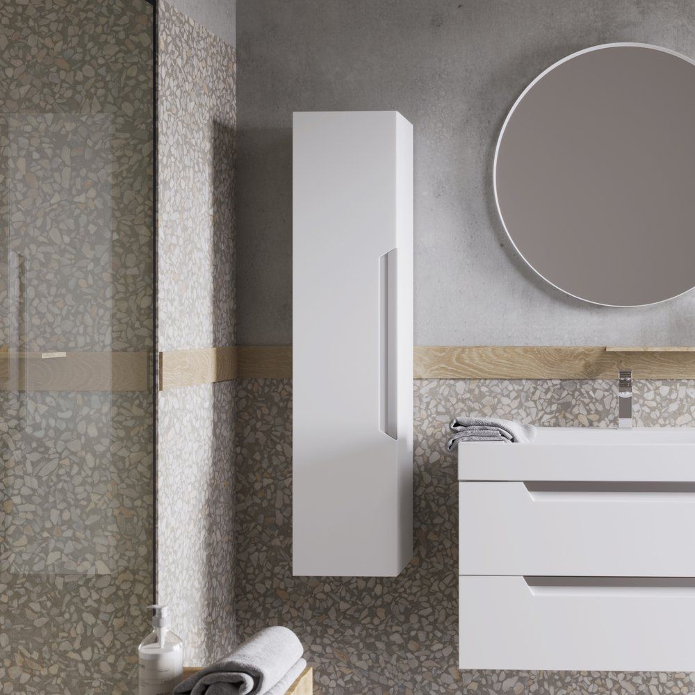 Шкаф-пенал имеет размеры 30x25x133 см, что позволяет ему легко встраиваться в ванную комнату любого размера. Он выполнен из МДФ с эмалевым покрытием, что придаёт изделию как долговечность, так и эстетическую привлекательность. Подвесная конструкция обеспечивает лёгкость монтажа. Фасад также выполнен из МДФ и покрыт эмалью, фурнитура сатинирована для придания дополнительного блеска. Внутри находятся съёмные полки, которые можно адаптировать под ваше хранение. Гарантия на изделие составляет 2 года.