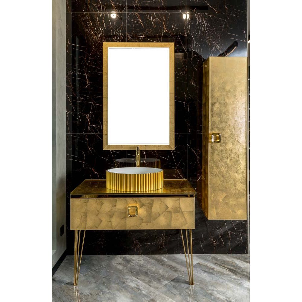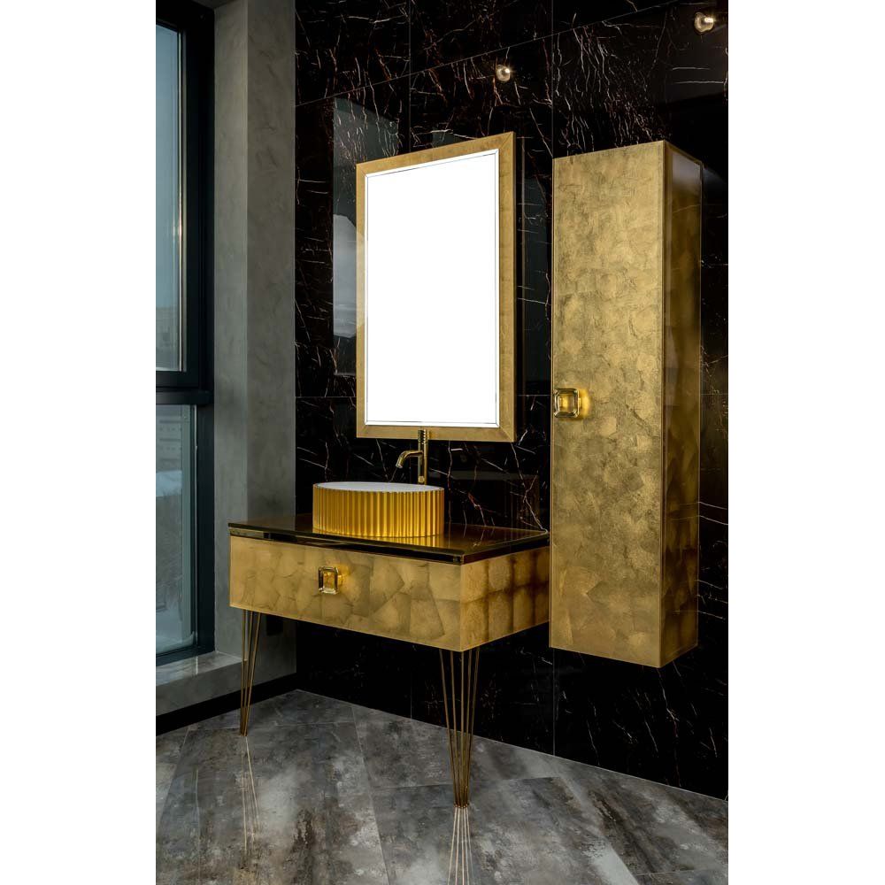 - Фурнитура выполнена в элегантном золотом цвете, подчеркивающем премиальный статус шкафа.