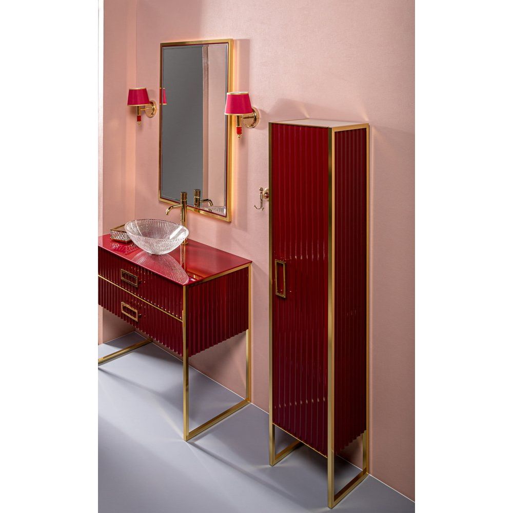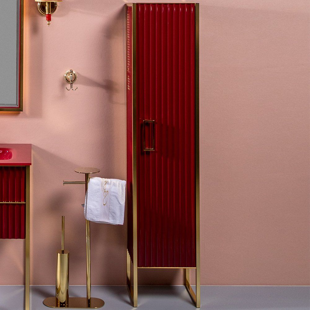 Представляем вашему вниманию изысканный шкаф-пенал Armadi Art Monaco R. Это идеальное решение для ванной комнаты, олицетворяющее уникальное сочетание роскоши и функциональности. Выполненный в изумительных бордовых и золотых оттенках, этот пенал станет не только удобным местом для хранения, но и стильным акцентом в интерьере.