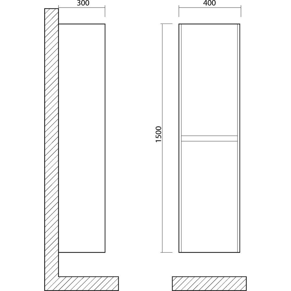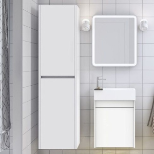 - Габариты шкафа: 40 см ширина, 30 см глубина, 150 см высота. Компактные размеры позволяют использовать его даже в небольших ванных комнатах.