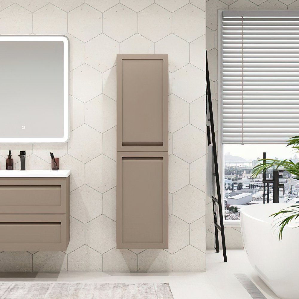 Шкаф-пенал Art&Max Platino в изысканном матовом оттенке капучино — это идеальное сочетание стиля и функциональности для вашей ванной комнаты. Этот шкаф-пенал станет незаменимым элементом вашего интерьера, предлагая не только дополнительное место для хранения, но и задавая тон всей обстановке. Изготовленный в Италии, он выполнен из долговечного и экологичного МДФ, что обеспечивает надежность и эстетичный внешний вид.