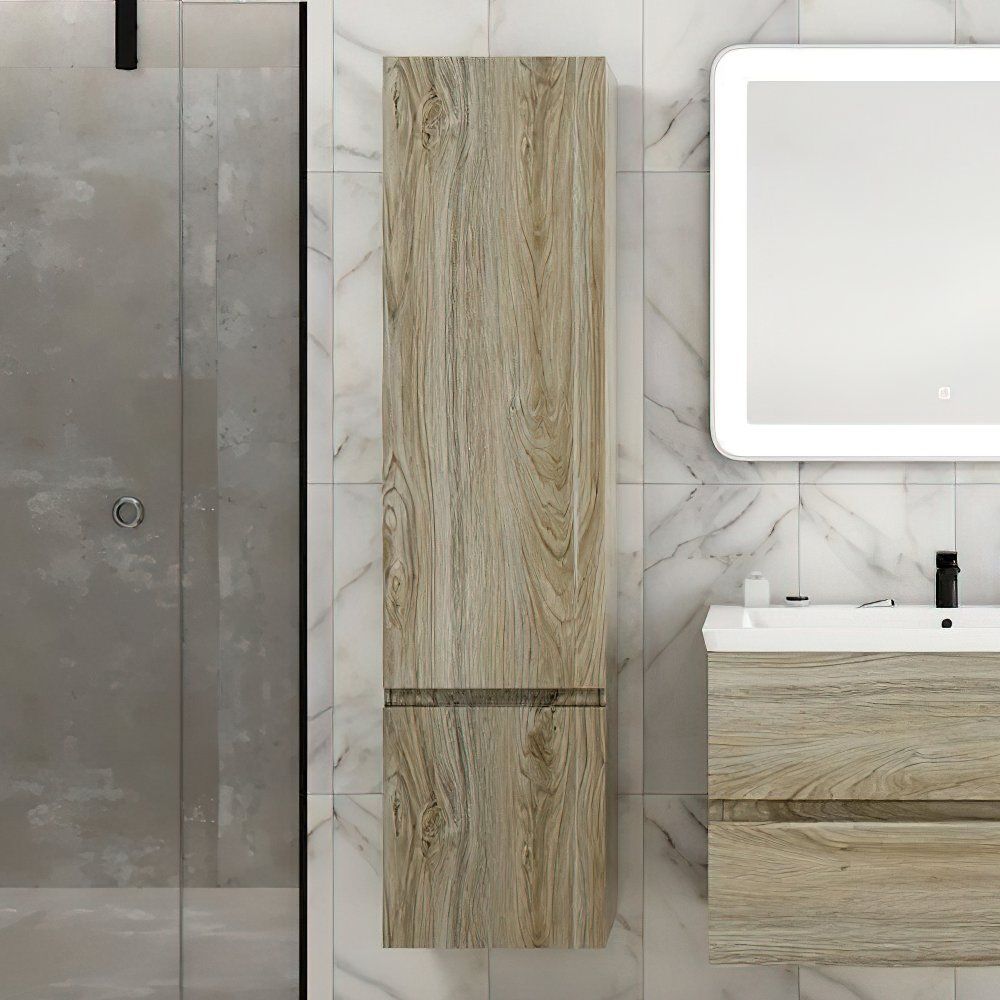 Шкаф-пенал Art&Max Techno 40 дуб мелфорд имеет размеры 40x30x160 см, что делает его компактным, но вместительным элементом для вашей ванной комнаты. Компактный и элегантный корпус из МДФ покрыт специальной пленкой, что придаёт ему стильный и современный вид. Фасад также выполнен из МДФ с аналогичным покрытием, что обеспечивает единый дизайнерский облик изделия. Дверцы и ящики оснащены механизмом доводчика, что делает их использование максимально комфортным. Съемные внутренние полки позволяют оптимально организовать пространство внутри шкафа.