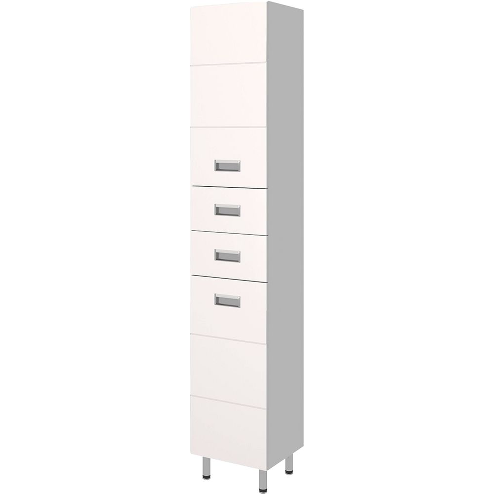 Шкаф-пенал Emmy Монтана 30 L имеет размеры 30x32x190 см, что делает его компактным и вместительным одновременно. Он выполнен из МДФ и покрыт пленкой, что обеспечивает стойкость к влаге и удобство в уходе. Дверки и ящики оснащены фурнитурой серебряного цвета. В шкафу предусмотрены выдвижные ящики и съёмные внутренние полки для оптимизации хранения. Благодаря механизму доводчика, пользователи могут наслаждаться плавным и тихим закрыванием. Гарантия на изделие составляет 1 год.