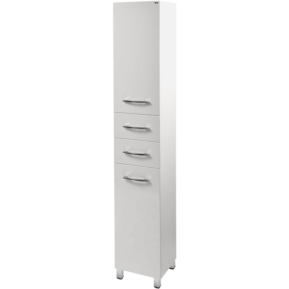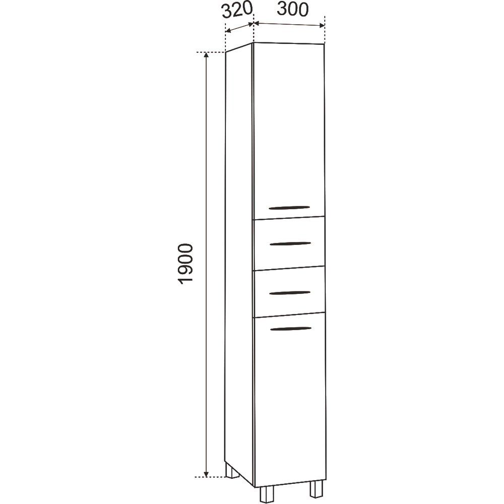 Шкаф-пенал имеет компактные размеры 30x32x190 см, что делает его идеальным решением даже для небольших ванных комнат. Корпус и фасад изготовлены из МДФ с пленочным покрытием, обеспечивающим защиту от влаги. Съемные полки внутри позволяют гибко настроить внутреннее пространство под ваши нужды. В комплекте также предусмотрены элементы для напольного и настенного монтажа, что гарантирует устойчивость конструкции.