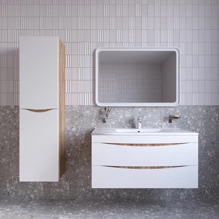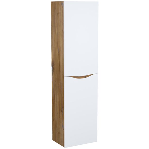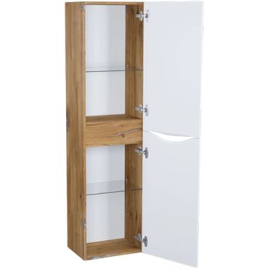 Шкаф-пенал IDDIS Cloud станет стильным и функциональным дополнением для вашей ванной комнаты. Выполненный в изысканной комбинации белого цвета и золотистого дуба, этот шкаф-пенал не только радует глаз, но и помогает рационально использовать пространство. Подвесная конструкция гарантирует легкость уборки и позволяет создать ощущение воздушности интерьера.