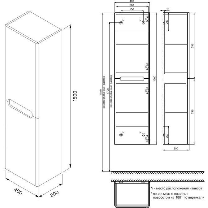 - Гибкость использования благодаря съемным полкам и возможности выбора стороны открытия дверцы.