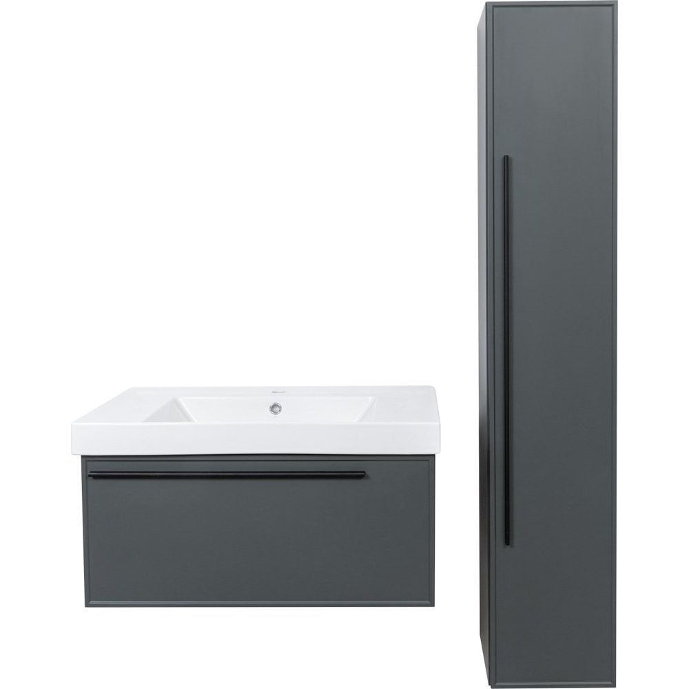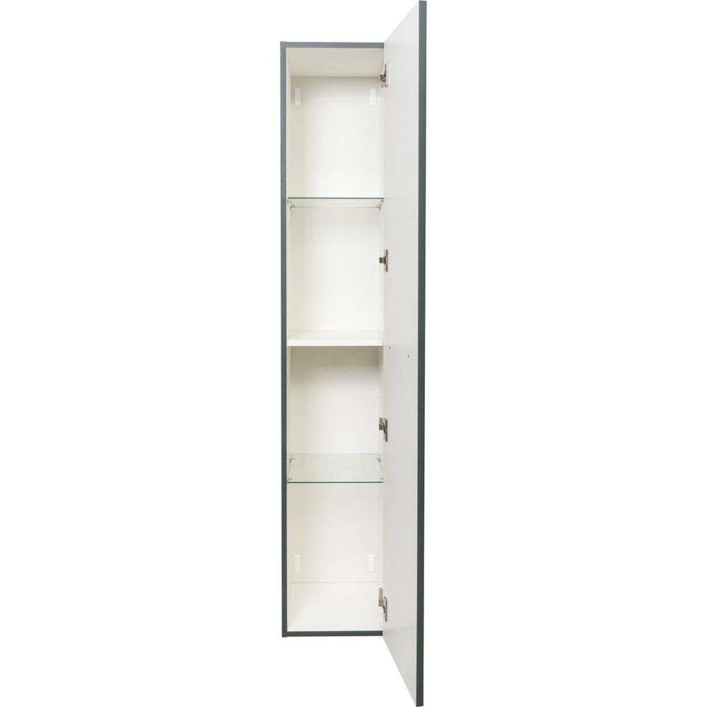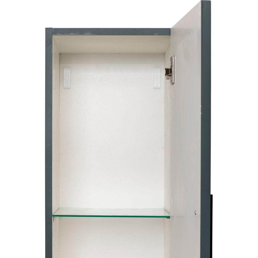 Шкаф-пенал La Fenice Elba серого цвета имеет размеры 30x33,45x160 см, что позволяет компактно разместить его даже в небольшой ванной комнате. Он выполнен из ЛДСП и МДФ, оба материала покрыты эмалью, что обеспечивает долговечность и лёгкость в уходе. Внутренние съемные полки позволяют гибко настроить пространство под ваши нужды. Фурнитура выполнена в элегантном чёрном цвете, что подчеркивает современный стиль изделия.