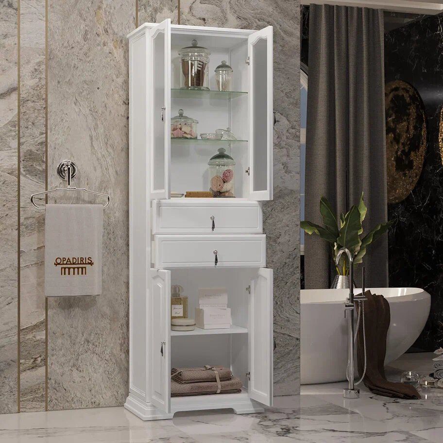 Шкаф-пенал Opadiris Риспекто 60 — идеальное сочетание стильного дизайна и функциональности. Его лаконичный белый цвет и утонченные линии делают его неотъемлемой частью любого интерьера ванной комнаты. Сочетание МДФ и массива бука в конструкции, а также эмалевые покрытия гарантируют долговечность и устойчивость к влажной среде, что особенно важно для сантехнических помещений. Этот шкаф поможет вам не только организовать хранение туалетных принадлежностей и полотенец, но и придаст ванной комнате изысканный вид.