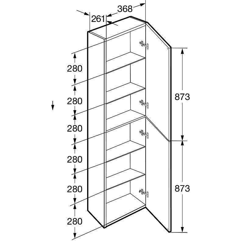 - Система хранения: две распашные дверцы, стеклянные полки внутри шкафа