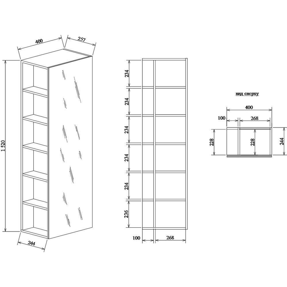 Шкаф-пенал Sanflor Чикаго имеет размеры 40x25,7x152 см, что позволяет эффективно использовать даже ограниченное пространство. Подвесная конструкция облегчает уборку и создаёт эффект легкости интерьера. Корпус выполнен из высококачественного ЛДСП с ламинатным покрытием, а фасад украшен зеркалом. Модель оснащена как дверцами, так и открытыми полками, что обеспечивает удобство использования. Внутри находятся съемные и несъемные полки, что позволяет адаптировать пространство под ваши нужды. Товар произведен в России и имеет гарантию 2 года.
