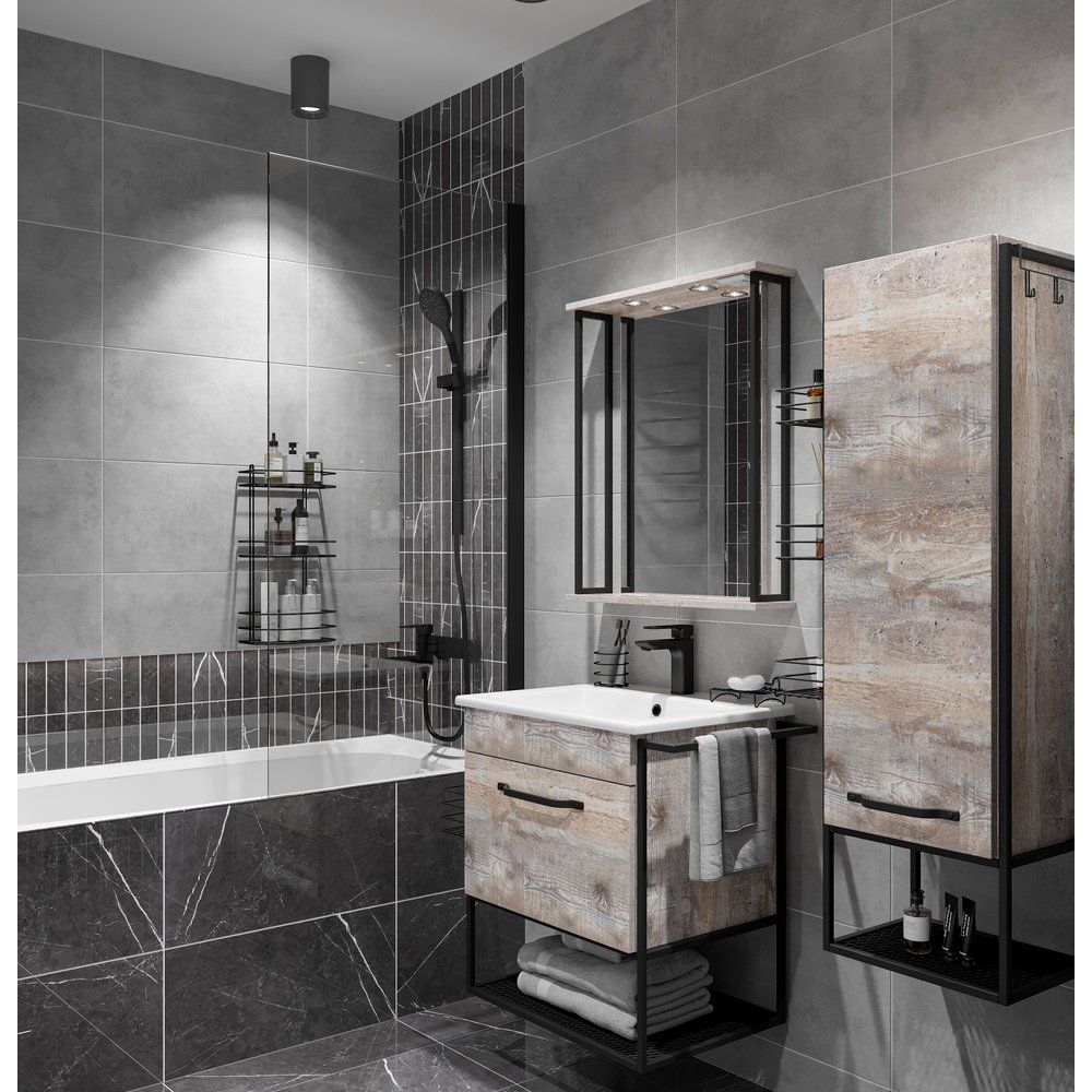Шкаф-пенал Sanflor Бруклин бетон пайн, экзотик — это идеальное сочетание элегантного дизайна и функциональности, которое украсит любую современную ванную комнату. Исполненный в стильном и универсальном цвете с черной фурнитурой, этот шкаф станет важным элементом интерьера, обеспечивая удобное и эргономичное хранение ваших принадлежностей.