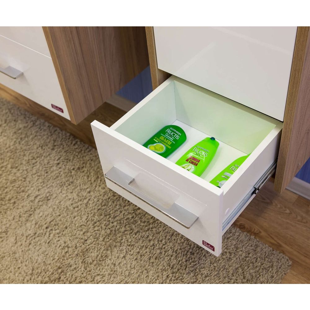 - Прочный корпус и фасад из ЛДСП с надежным ламинатным и эмалевым покрытием.