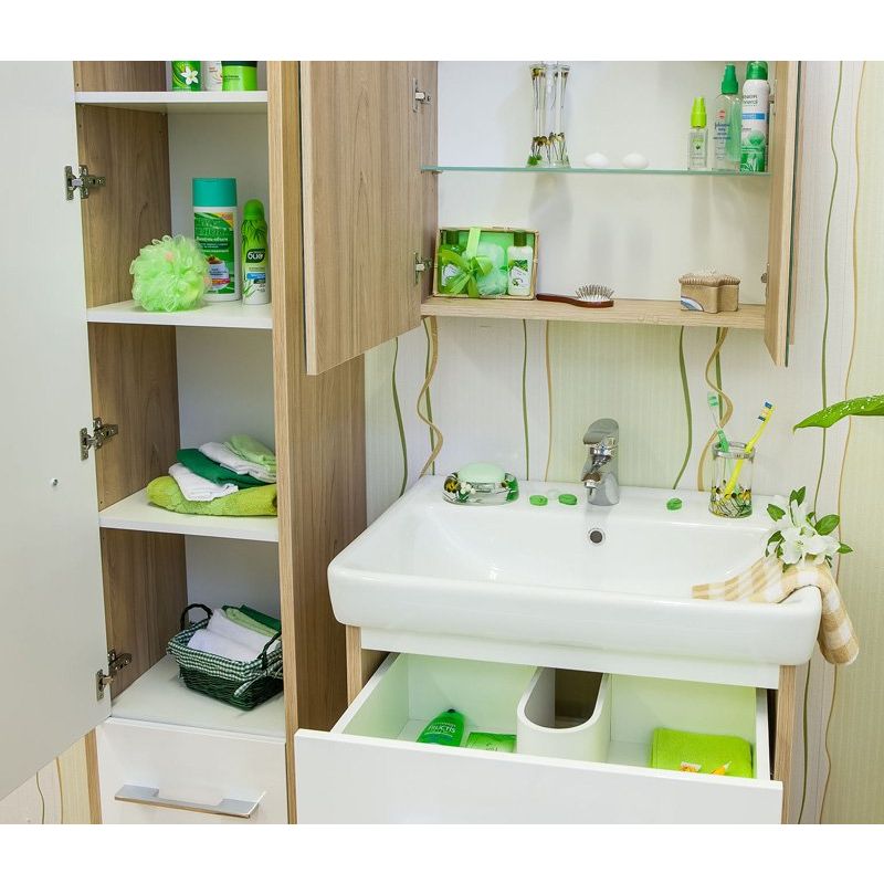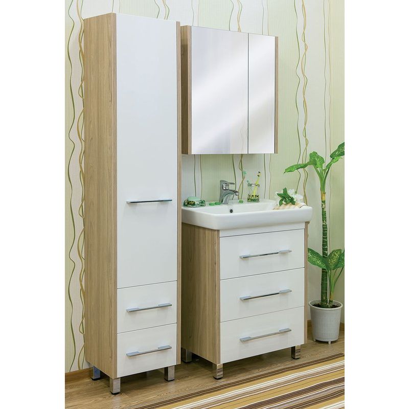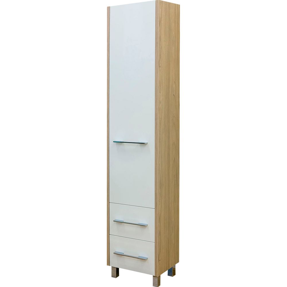 Шкаф-пенал Sanflor Ларго L в цвете "вяз швейцарский" и белом — это стильное и функциональное решение для любой ванной комнаты. Впечатляющая высота 195 см позволяет максимально эффективно использовать пространство для хранения, а стильный дизайн делает его идеальным дополнением современного интерьера.