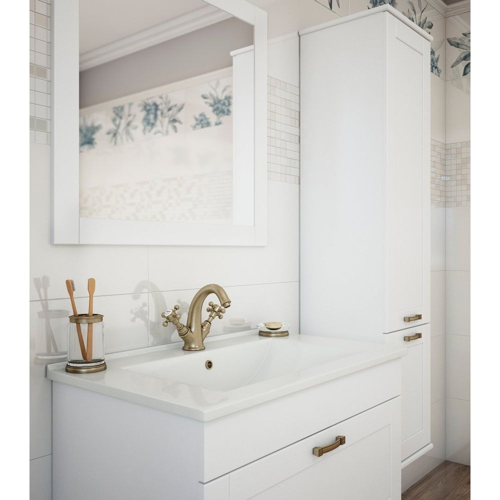 Шкаф-пенал Sanflor Ванесса R имеет размеры 34,2x32,2x141 см и является подвесной конструкцией. Корпус выполнен из прочного ЛДСП, а фасад из МДФ, оба покрыты эмалью для дополнительной устойчивости к воздействию влаги. Удобный механизм доводчика предотвращает резкие хлопки дверок, делая использование шкафа более комфортным. Бронзовая фурнитура завершает изысканный внешний вид. Внутренние полки — съемные, что позволяет организовать пространство под индивидуальные нужды. Гарантия на этот продукт составляет 2 года, производится в России.