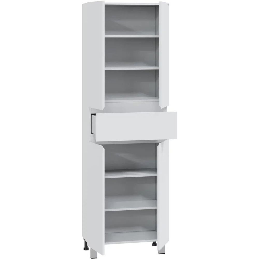 Этот напольный шкаф-пенал имеет габариты 60x30x190 см, что делает его идеальным для небольших помещений. Отсутствие механизма доводчика обуславливает традиционное открывание дверок, а внутри предусмотрены несъемные полки для максимальной устойчивости конструкции. Произведен в России и сопровождается годовой гарантией на качество.