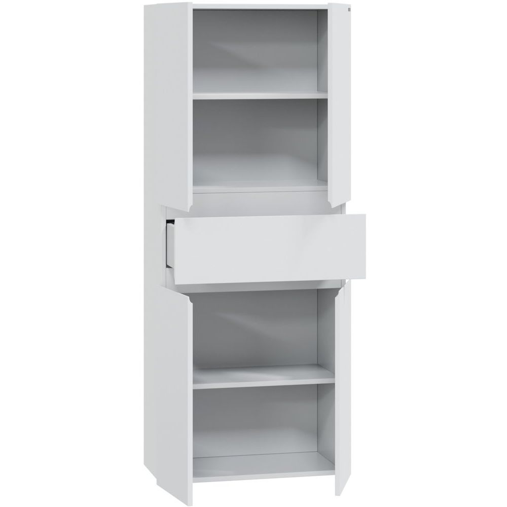 Шкаф-пенал СаНта Марс — это стильное и функциональное решение для вашей ванной комнаты. Благодаря современному дизайну и высококачественным материалам, он идеально впишется в любой интерьер. Подвесная конструкция создает ощущение легкости и не перегружает пространство, а четыре дверцы и выдвижной ящик гарантируют удобное хранение всех необходимых вещей.