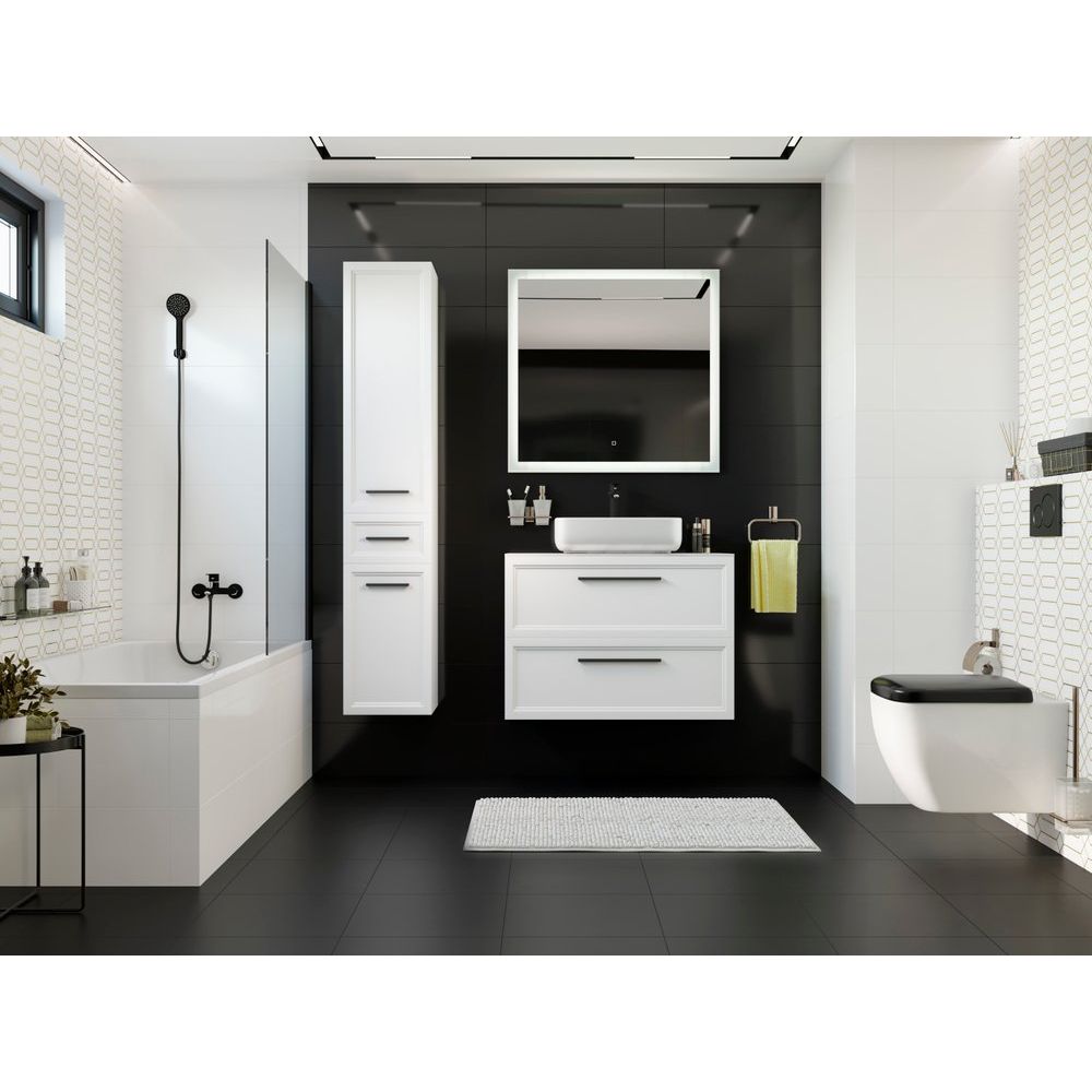 - Элегантный дизайн в белом матовом цвете с черной фурнитурой.