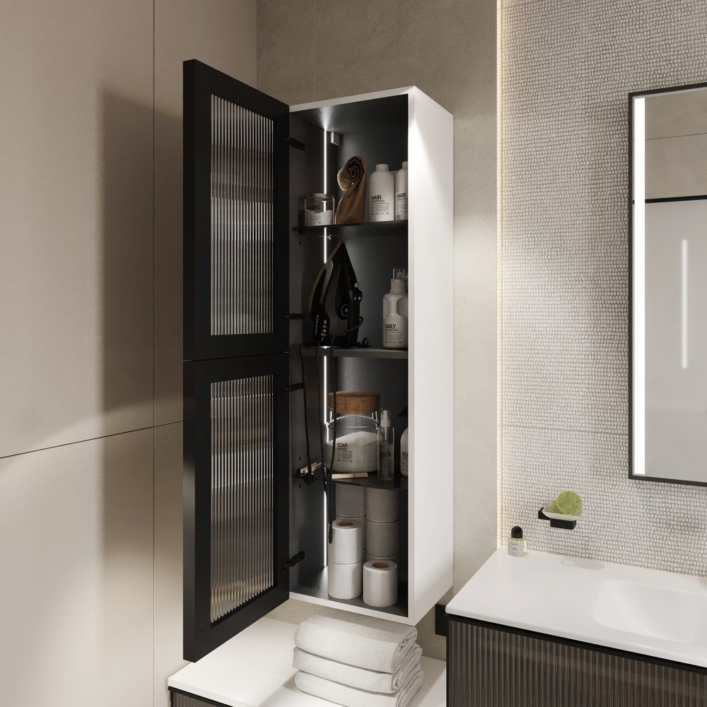 Шкаф-пенал STWORKI Левангер 40 в белом матовом цвете — это идеальное решение для вашего ванной комнаты, объединяющее стильный дизайн и практичность. Подвесная конструкция из высококачественного МДФ с эмалированным покрытием прекрасно сочетается с современными интерьерами, а фасад из стекла и металла добавляет изысканности и легкости этому функциональному элементу. Элегантный и вместительный шкаф-пенал обеспечит вашим вещам безопасное хранение, а въездная подсветка внутреннего пространства создаст дополнительное удобство и комфорт в использовании.