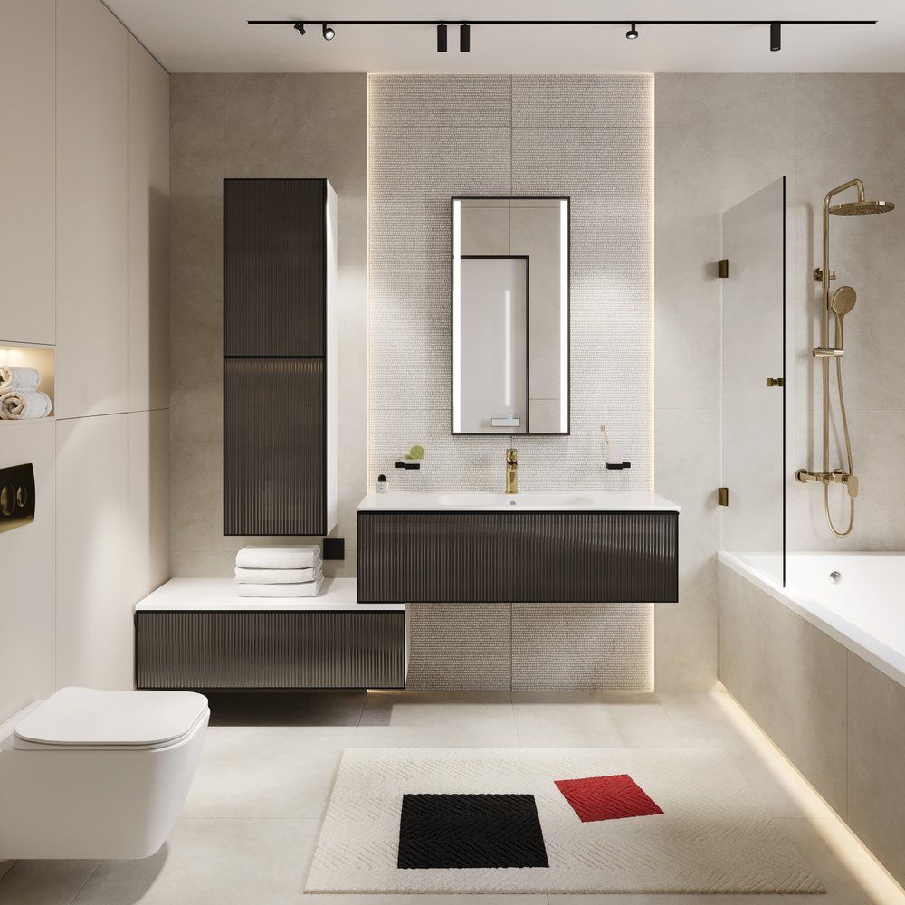 - Эстетичное сочетание стеклянного фасада и матовой белой отделки.