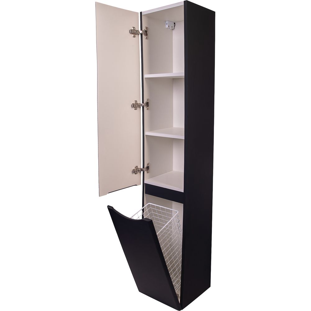 Шкаф-пенал обладает компактными габаритами 30x30x180 см, что делает его идеальным для ограниченного пространства ванной комнаты. Корпус и фасад шкафа изготовлены из МДФ, а покрытие выполнено пленкой для устойчивости к влаге и износу. Дверки и встроенная бельевая корзина гарантируют максимальную практичность. Полки внутри шкафа несъемные, что обеспечивает дополнительную прочность конструкции.
