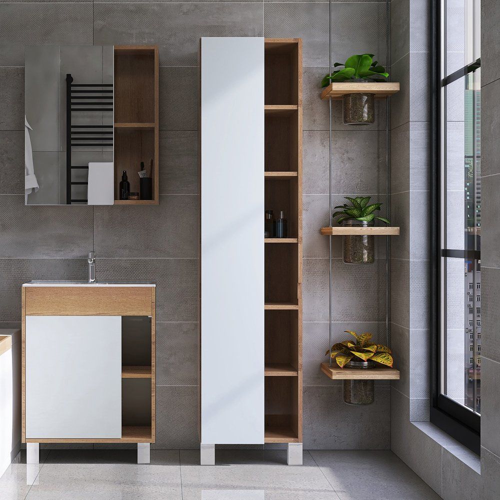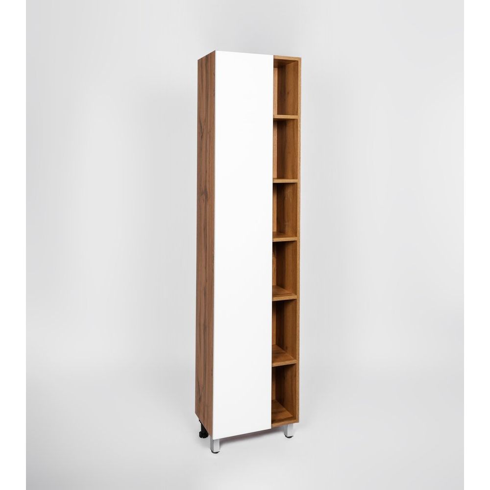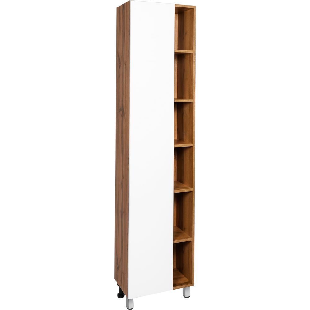Шкаф-пенал VIANT Бостон в изысканном оттенке дуб вотан с белыми элементами воплощает элегантность и функциональность. Он не только решает вопрос хранения в вашей ванной комнате, но и придает ей стильный вид. Такой шкаф-пенал станет идеальным решением для организации пространства в комнате любого размера.