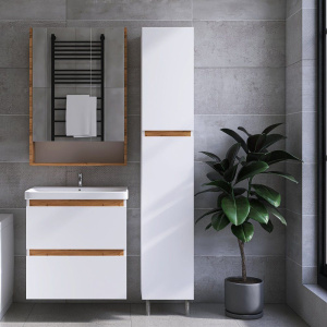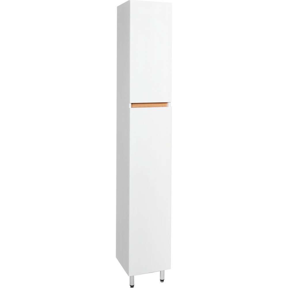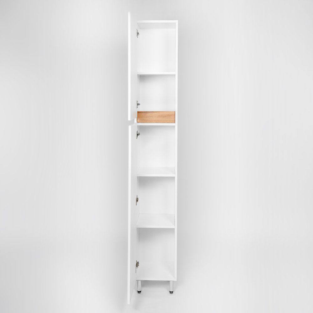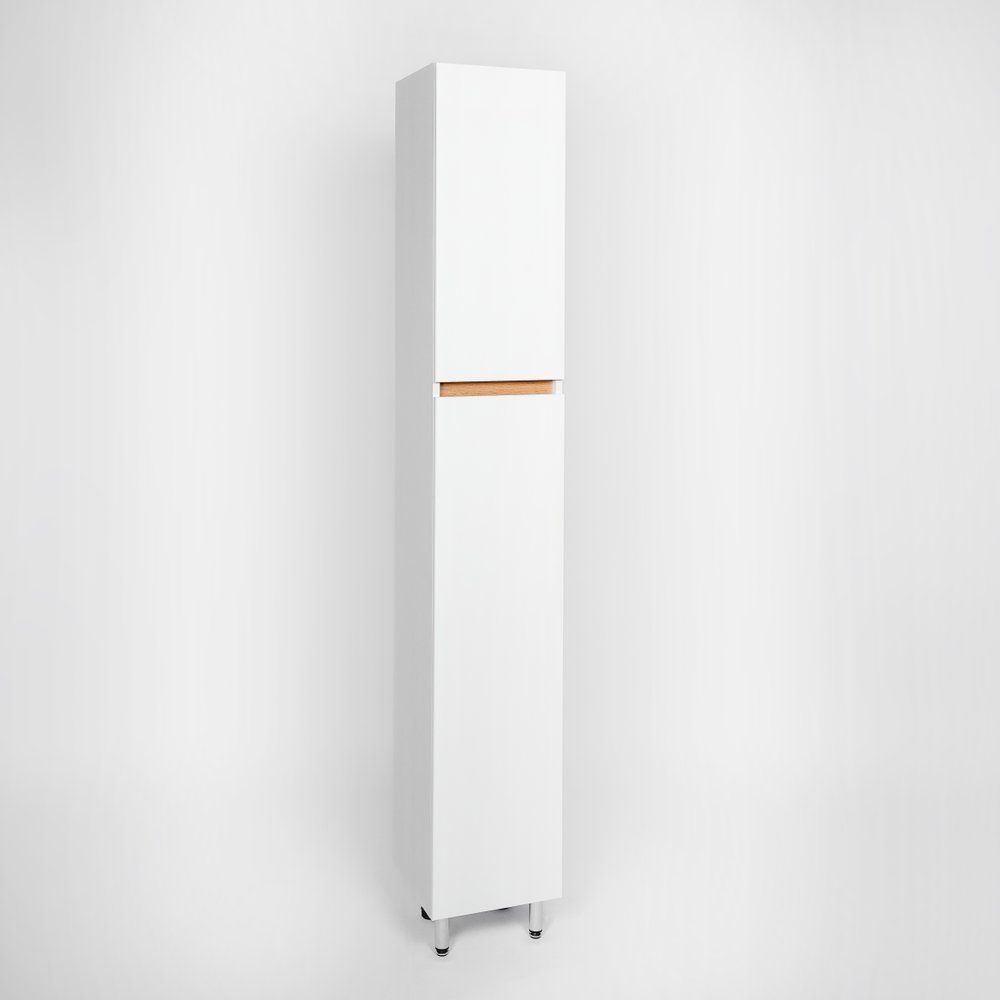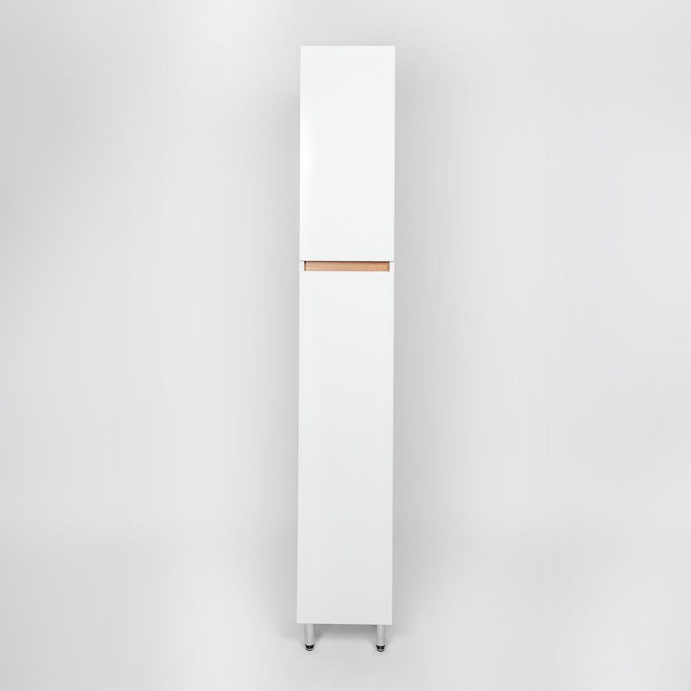 Габариты шкафа-пенала составляют 30x30x190 см, что делает его идеальным для компактного размещения. Он устанавливается на пол, а съёмные полки внутри дают возможность персонализировать внутреннее пространство под ваши нужды. Корпус и фасад выполнены из прочного МДФ и ЛДСП, что придаёт всей конструкции дополнительную стойкость. Покрытия из ламината и эмали обеспечивают защиту от влаги, что особенно важно для использования в условиях повышенной влажности ванной комнаты.