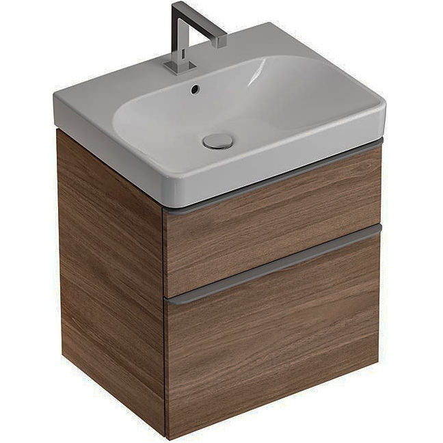 Тумба под раковину Geberit Smyle Square 500.352.JR.1 дополнит интерьер ванной комнаты. Благодаря подвесной конструкции модель не занимает много места, что позволяет экономить пространство и облегчает уборку. Тумба оснащена 2 выдвижными ящиками с доводчиками для бесшумной работы и ручками. Изделие выполнено из ВЛДСП с покрытием ламинат.