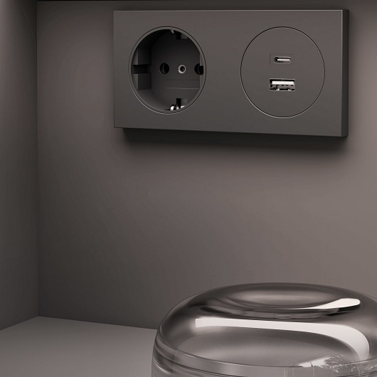- Требуется сетевое подключение с включённой фазой для освещения и не включённой фазой для розетки и двойной точки зарядки USB/USB-C