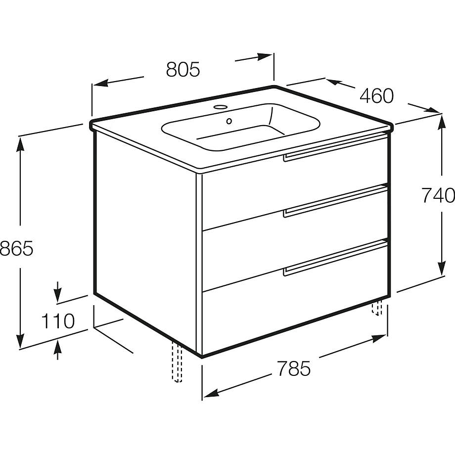 Модуль для раковины с 3-мя ящиками с механизмом мягкого закрывания.